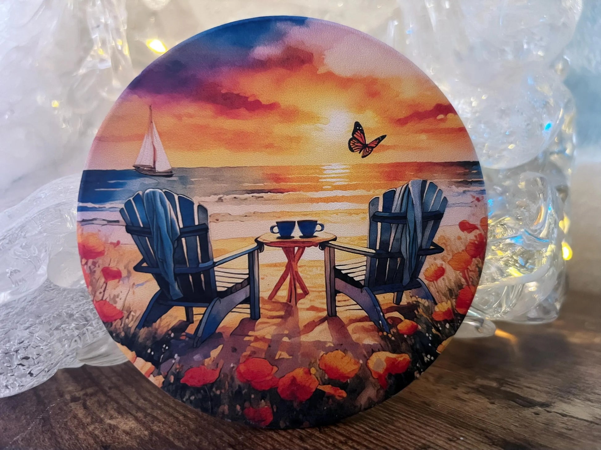 Imagine a beautiful afternoon at the beach, blanket on lap, sipping a cup of coffee as the waves roll in and the sun sets. This art peace will be a sense of calm into any space and when things get hectic you can just stop for a moment and imagine what it would be like to be sitting in this place right now. What a great gift to give to a friend for that perfect drink on a beautiful afternoon!