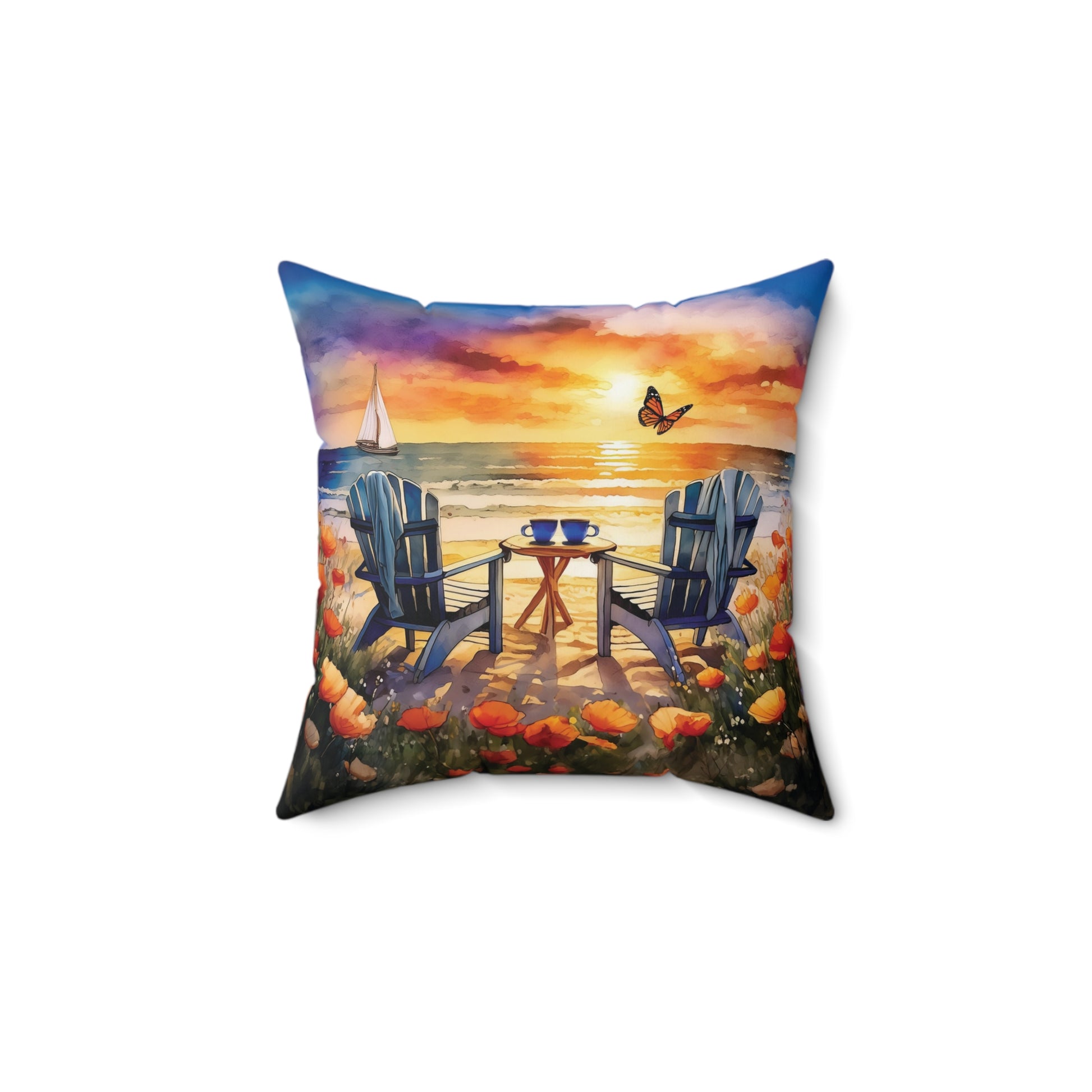Beach and Mountain Sunrise Sunset Spun Polyester Square Accent Pillow