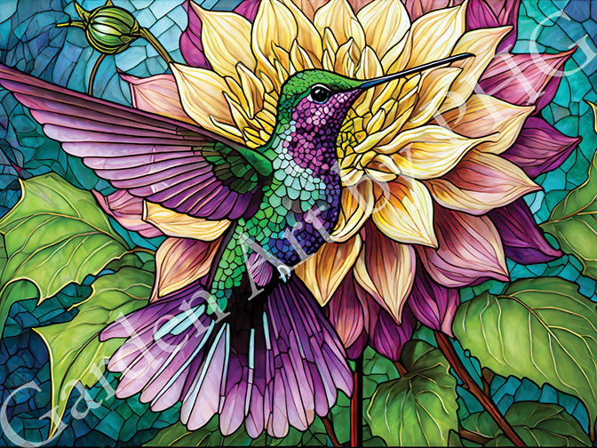 Hang "Vibrant Hummingbird on Beautiful Dahlias" in your home or garden to add a touch of elegance and vitality to any space, or gift it to a nature lover as a timeless expression of beauty and joy. Let this enchanting art piece transport you to a world of vibrant colors and serene moments, where the grace of the hummingbird and the splendor of dahlia flowers come together in perfect harmony.