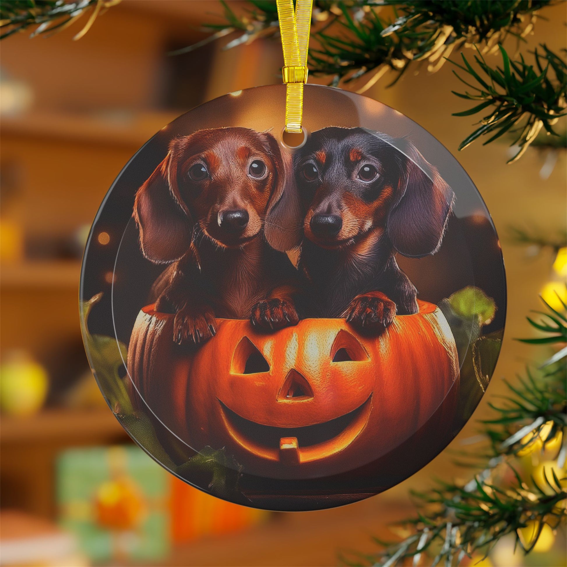 Beveled Glass Ornament Light Catcher Two Adorable Dachshunds Sitting in a Pumpkin Perfect Fall Decor Gift for Doxie Lovers