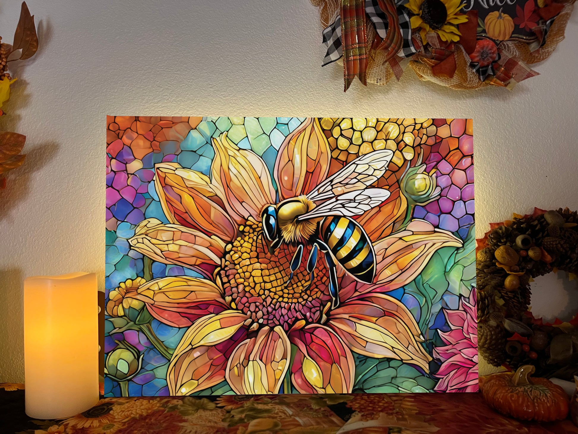 This cheerful print captures the carefree spirit of summer. The playful bee design is sure to put a smile on your face and start conversations wherever you go. Brighten up your indoor space and show your love for nature's hardest workers. Whether you're running errands or enjoying a day outdoors, the Busy Bee wall print will have you feeling happy as...well, a bee!