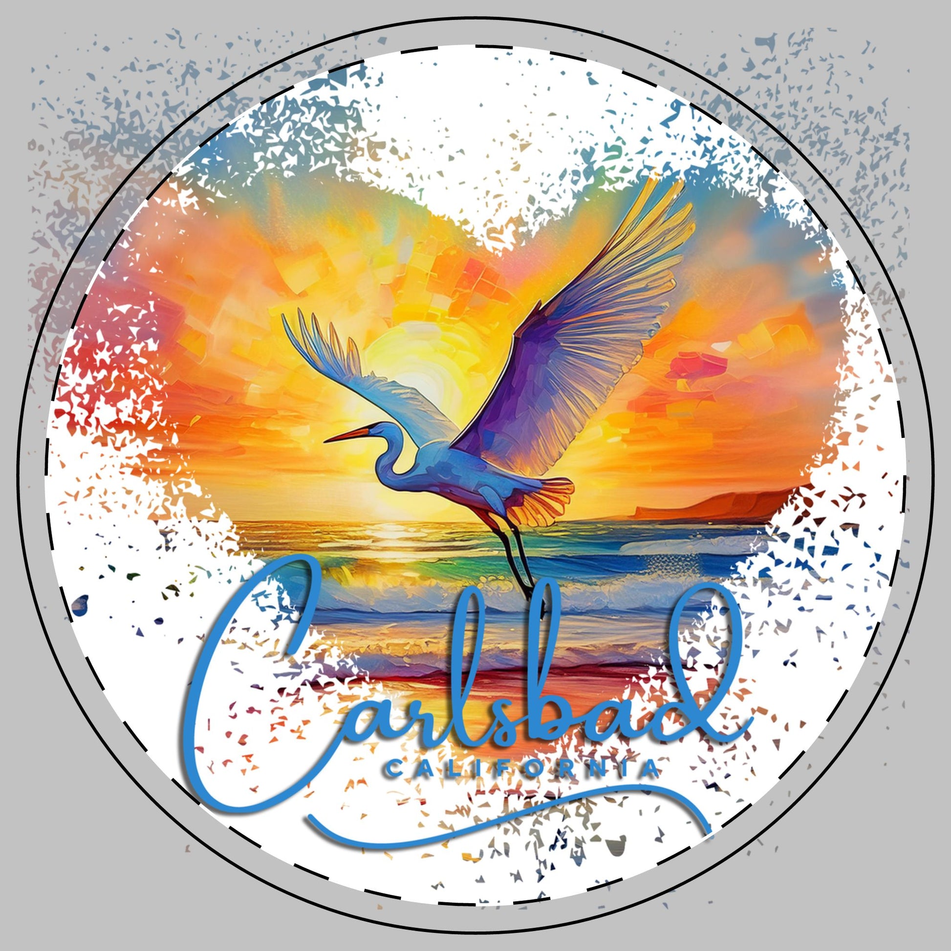 This beautiful susnet colored art is a reminder of the beauty in Carlsbad, California where beautiful egrets can be seen near the lagoons and flying down the coast with their graceful long wings. This would make a great gift for anyone who loves the coast and enjoys watching birds.