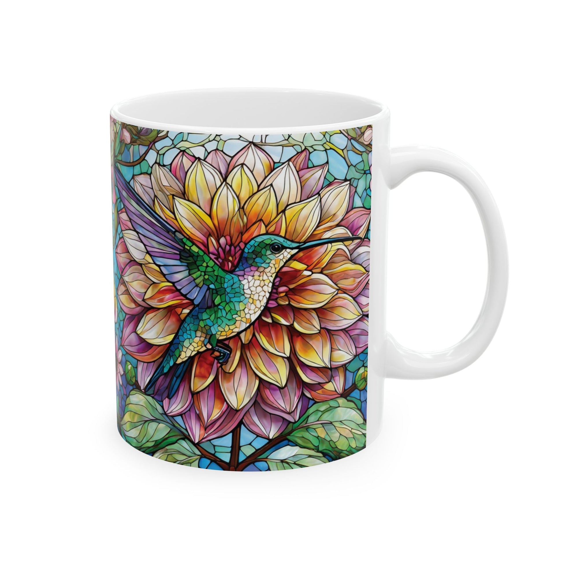 Dahlia Hummingbird Ceramic Mug, (11oz, 15oz)