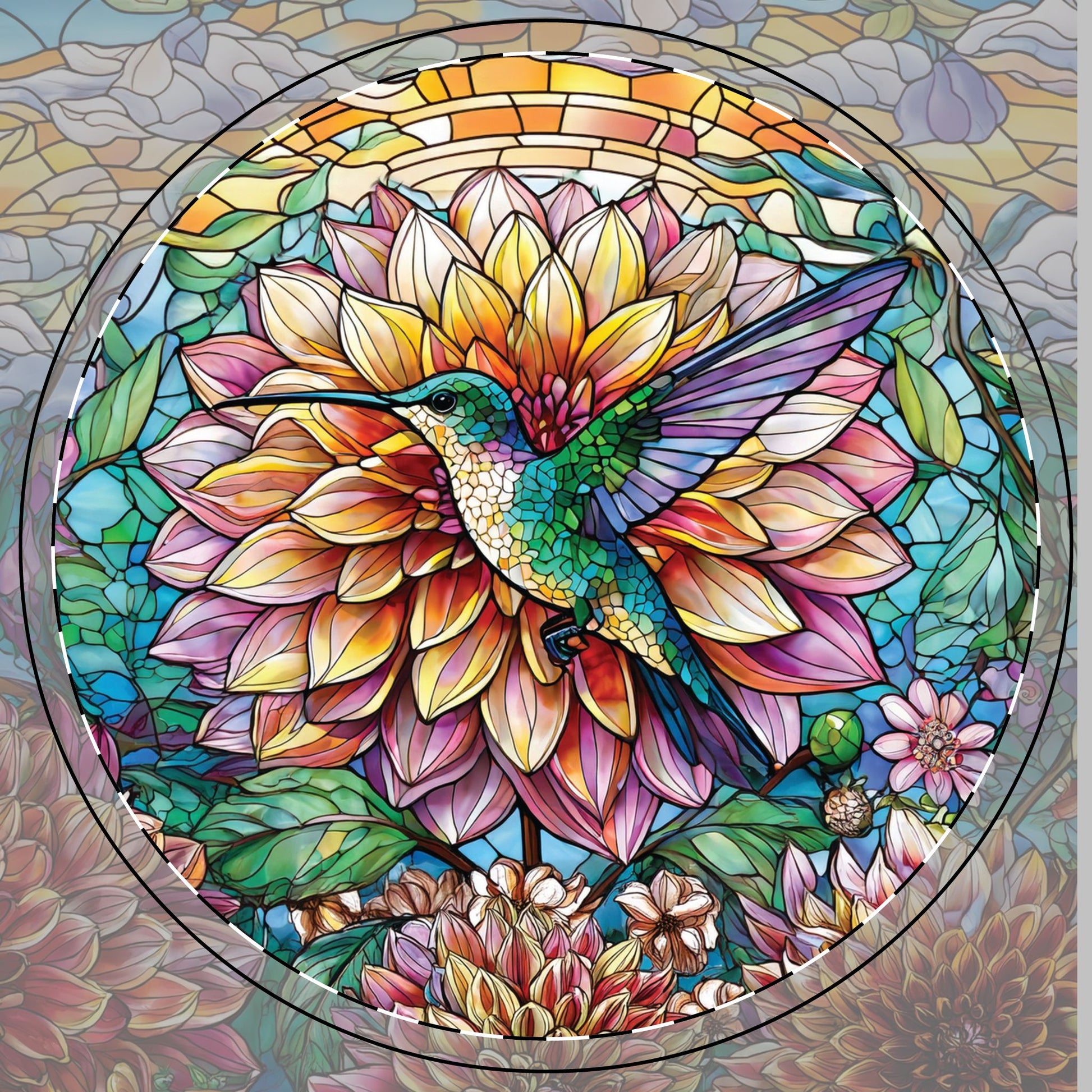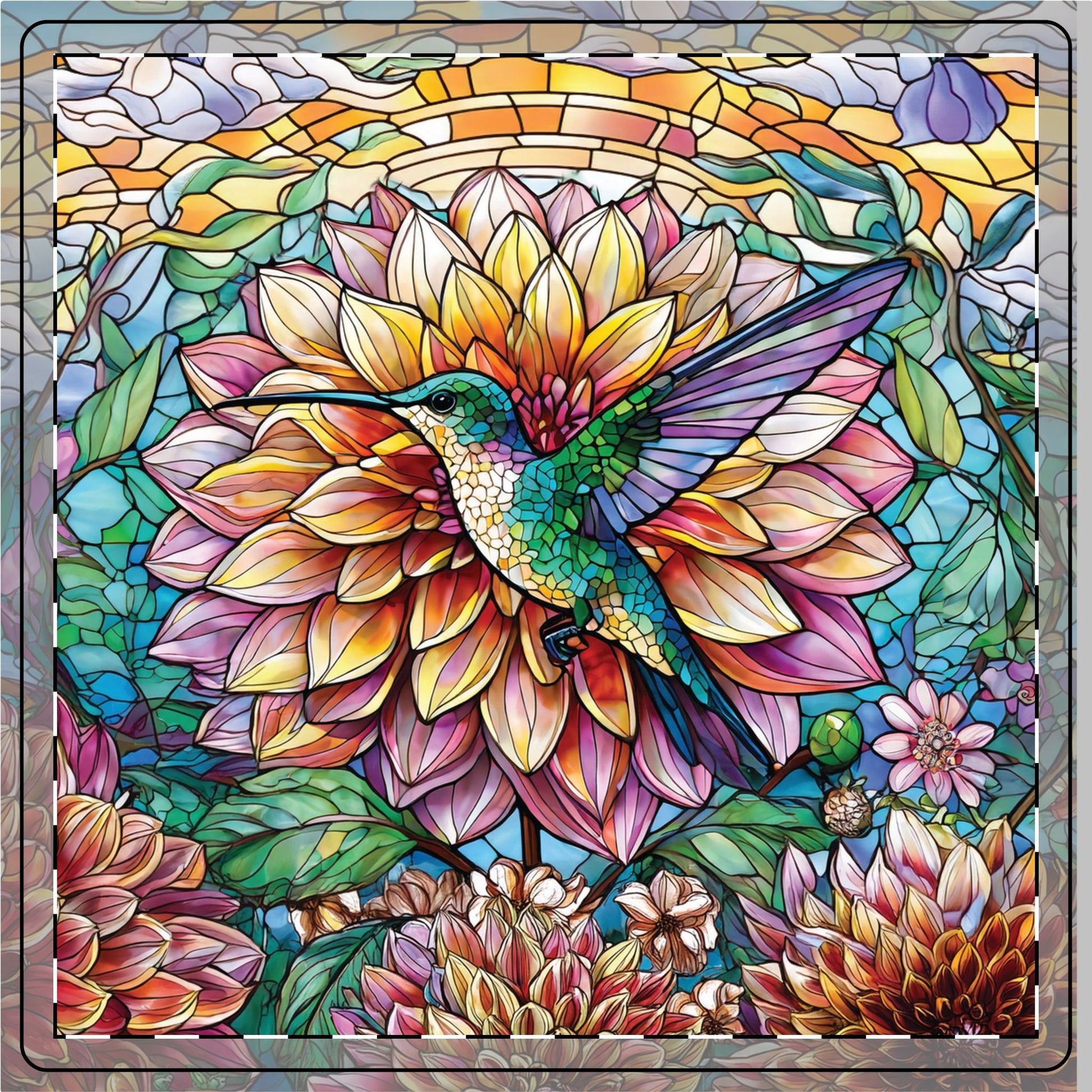 This exquisite piece brings to life the magical moment when the world's smallest bird pauses in mid-air, its wings a blur of motion, to sip nectar from the vibrant, blooming dahlia. Crafted with meticulous attention to detail, each brushstroke adds a layer of depth and emotion, making this artwork a window into a fleeting, yet timeless interaction within nature's kingdom. Perfect for those who wish to surround themselves with art that inspires and transforms, this piece promises to capture hearts and engage minds, making every glance a journey to an enchanted world. What a great gift to give to a friend or gardener for that perfect drink on a beautiful afternoon!