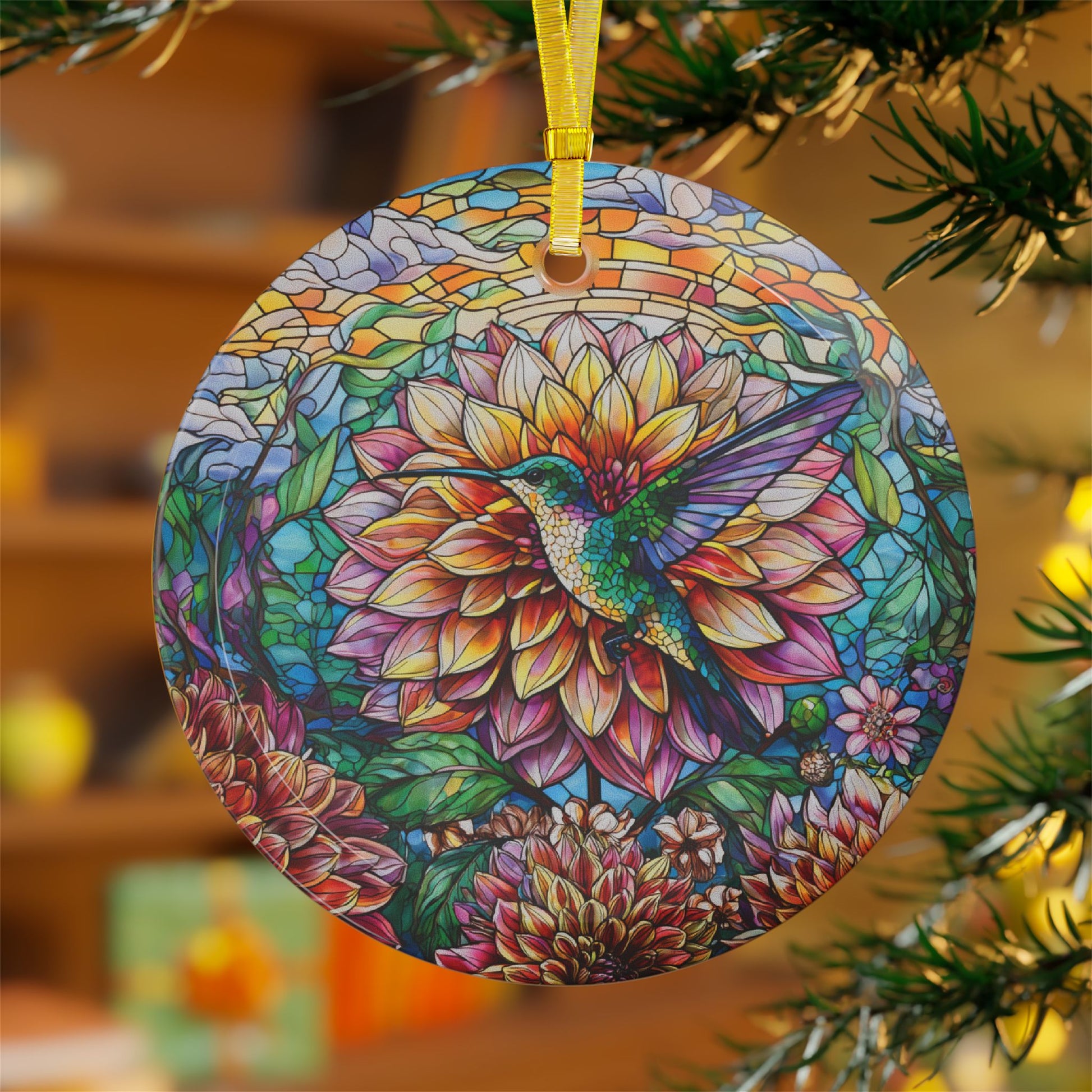 Dahlia Hummingbird Light Catcher Glass Ornament