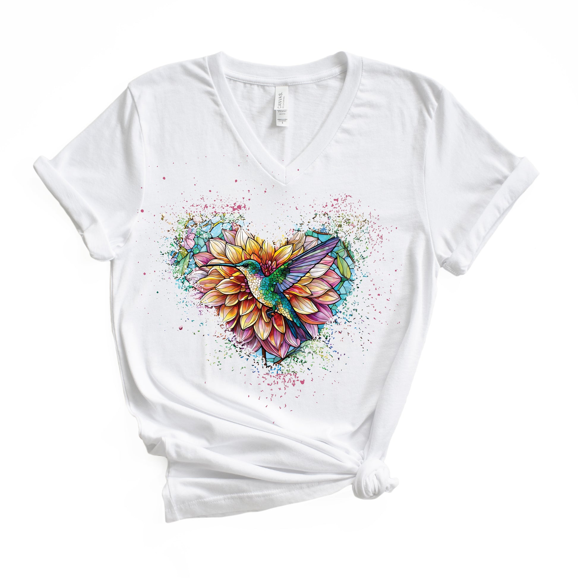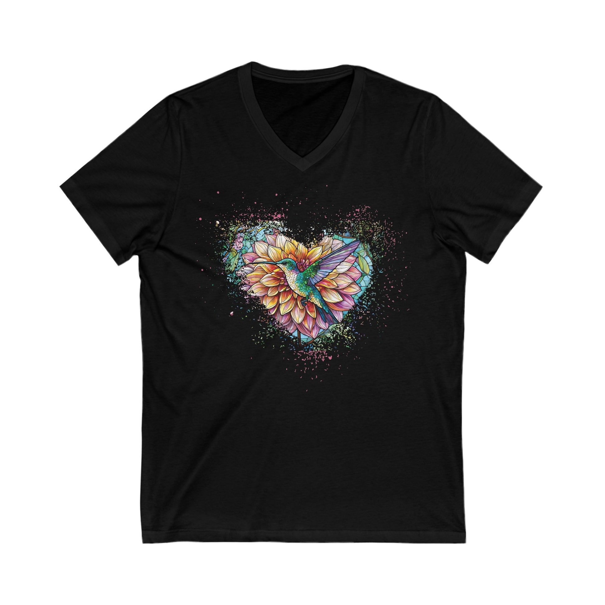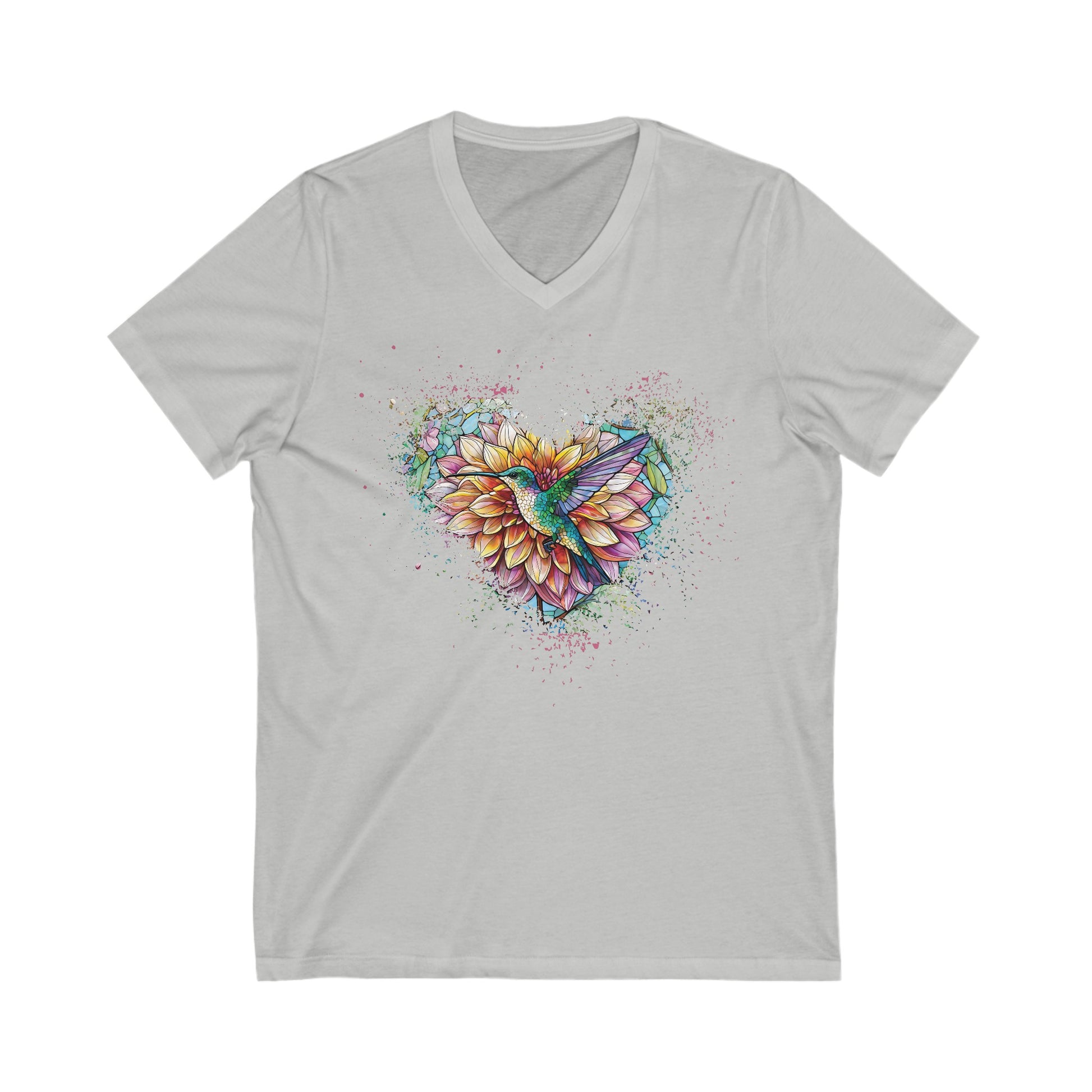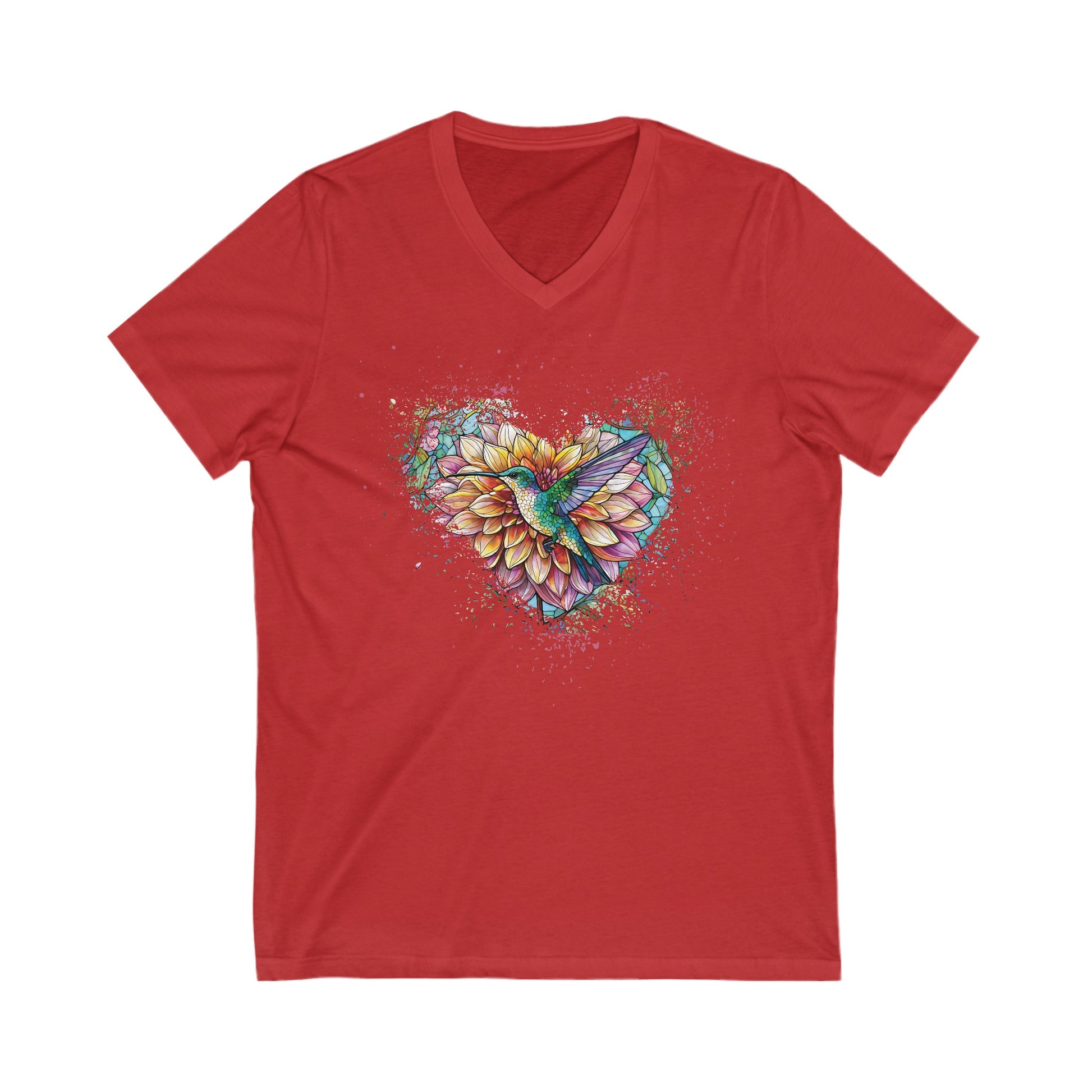 Dahlia Hummingbird Tshirt Garden Lovers Shirt Jersey Short Sleeve V-Neck Tee