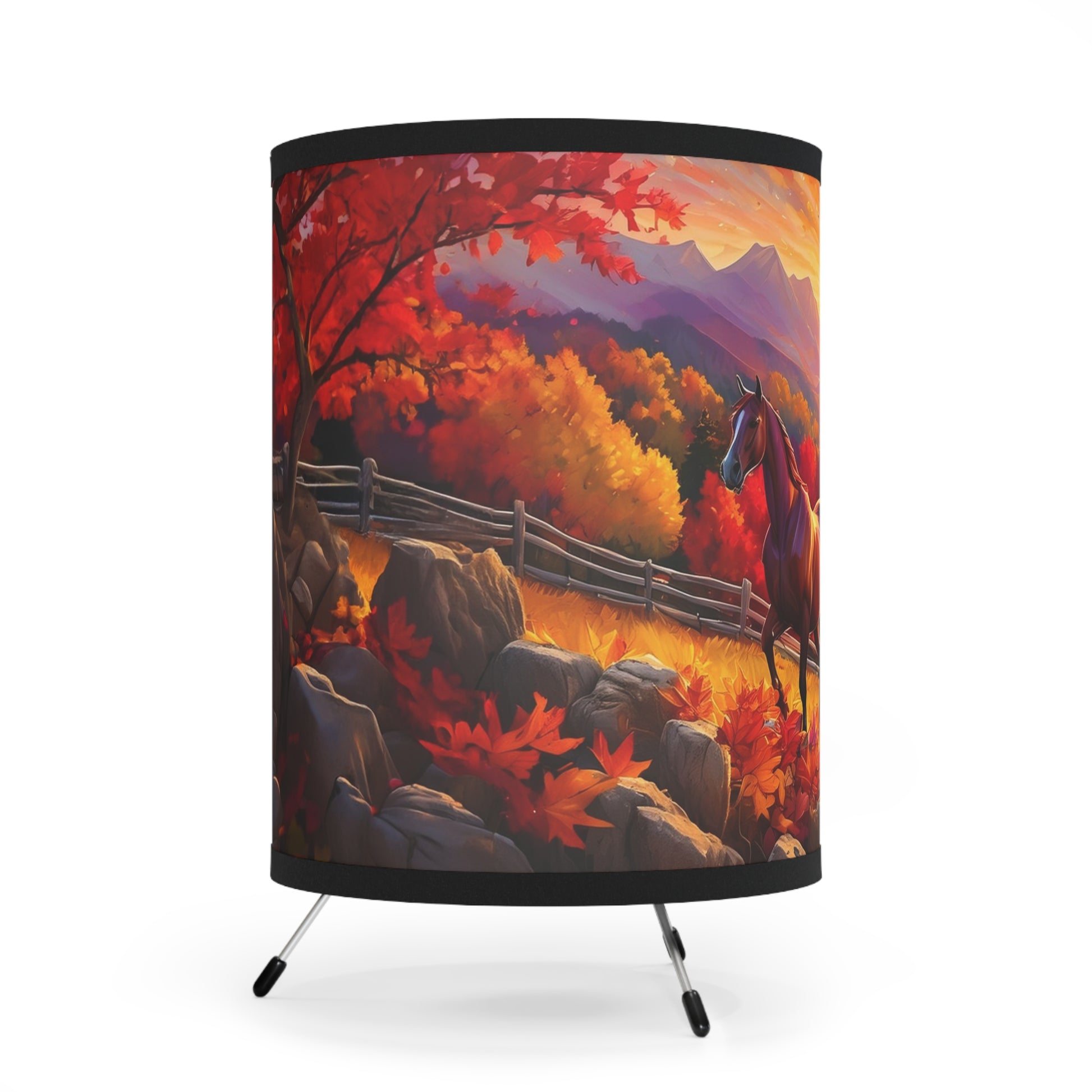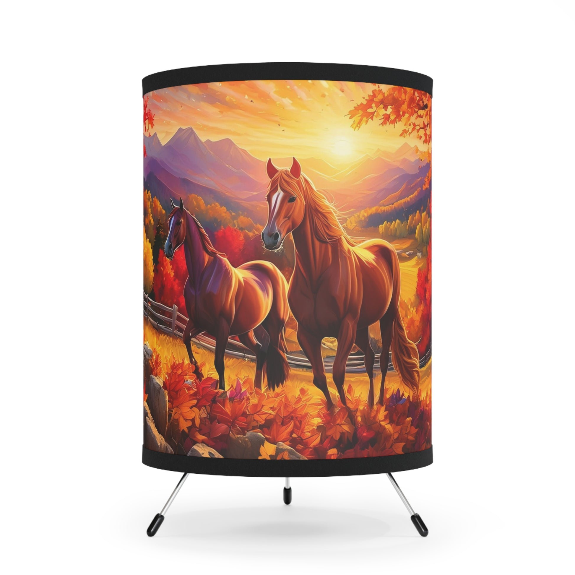 Fall Horse Sunset Tripod Lamp with High-Res Printed Shade, US\CA plug