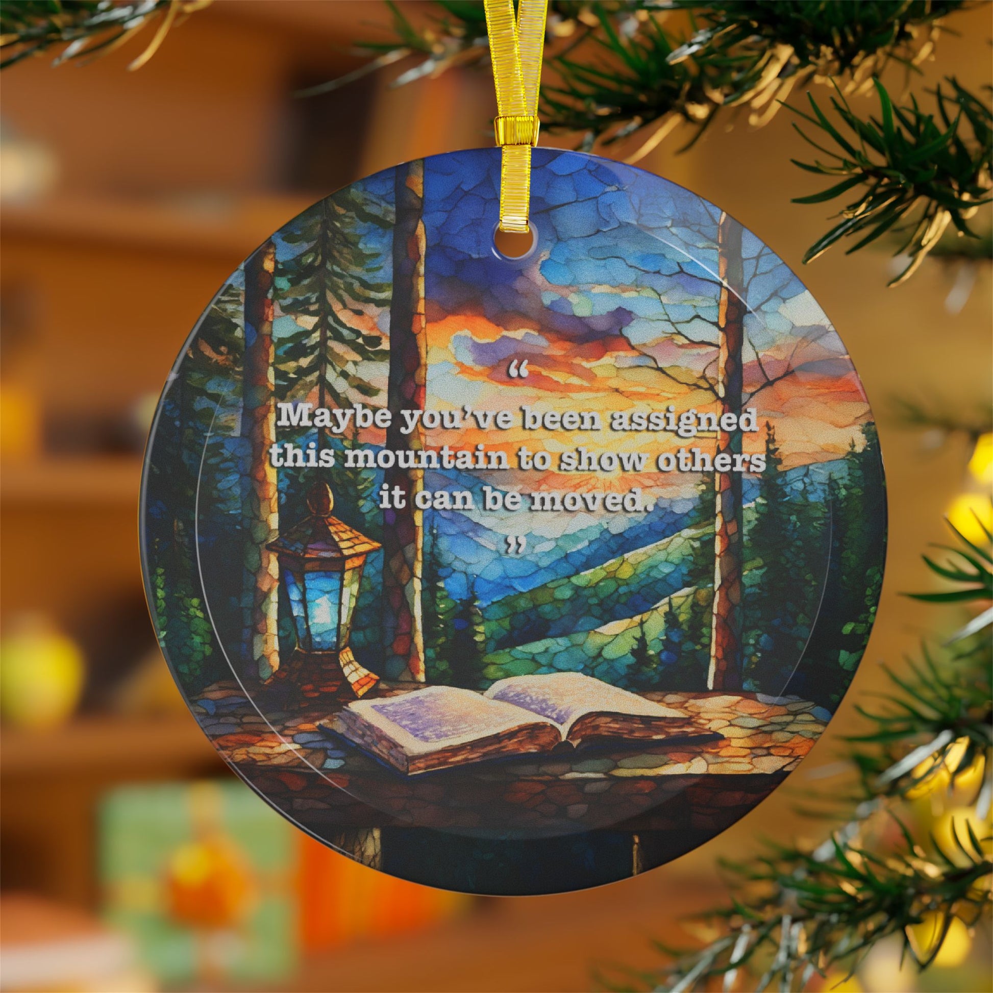 Glass Ornaments Mountain Scene Beveled Glass Ornament Light Catcher with Inspirational Quote Decorative Glass Art Holiday Ornaments