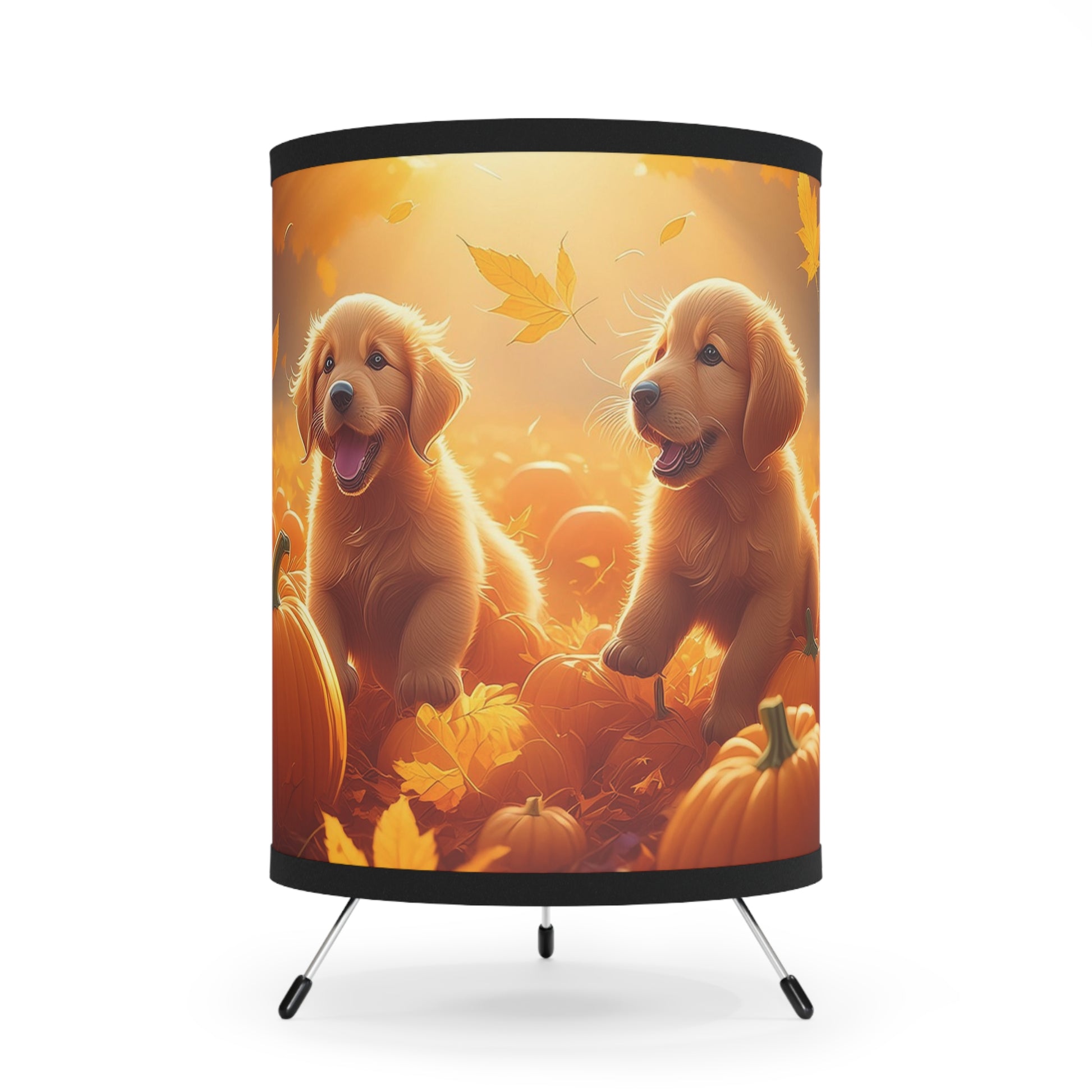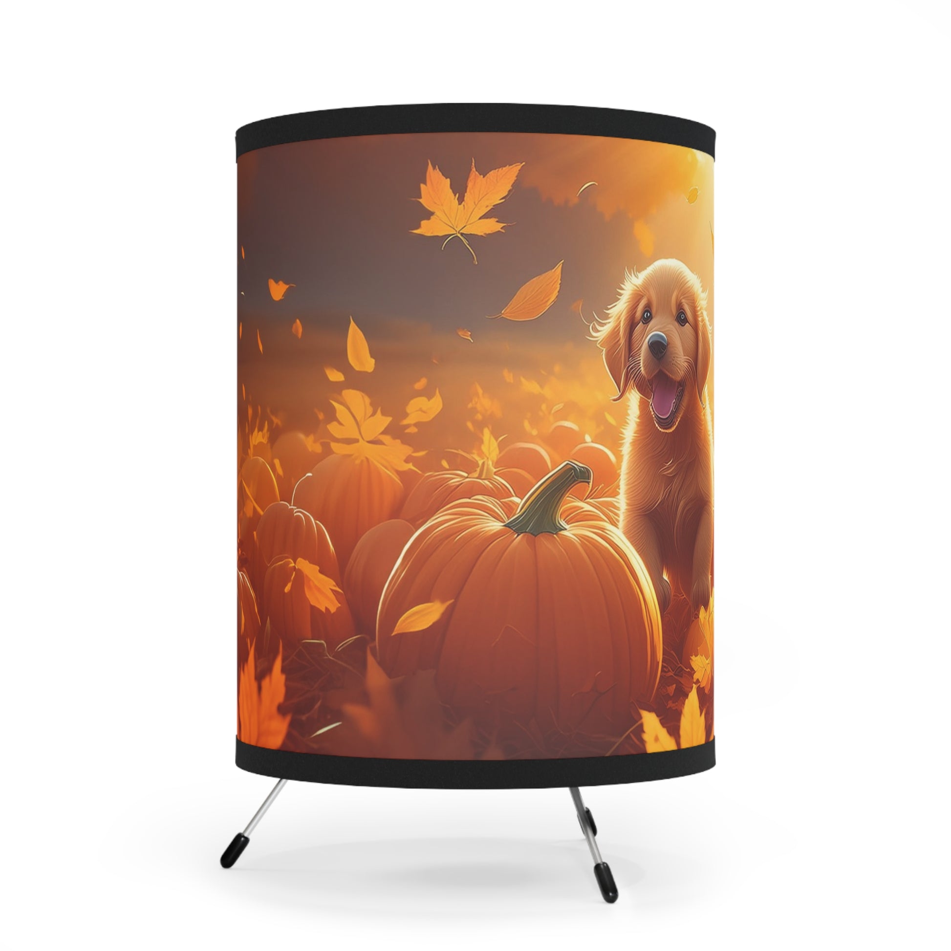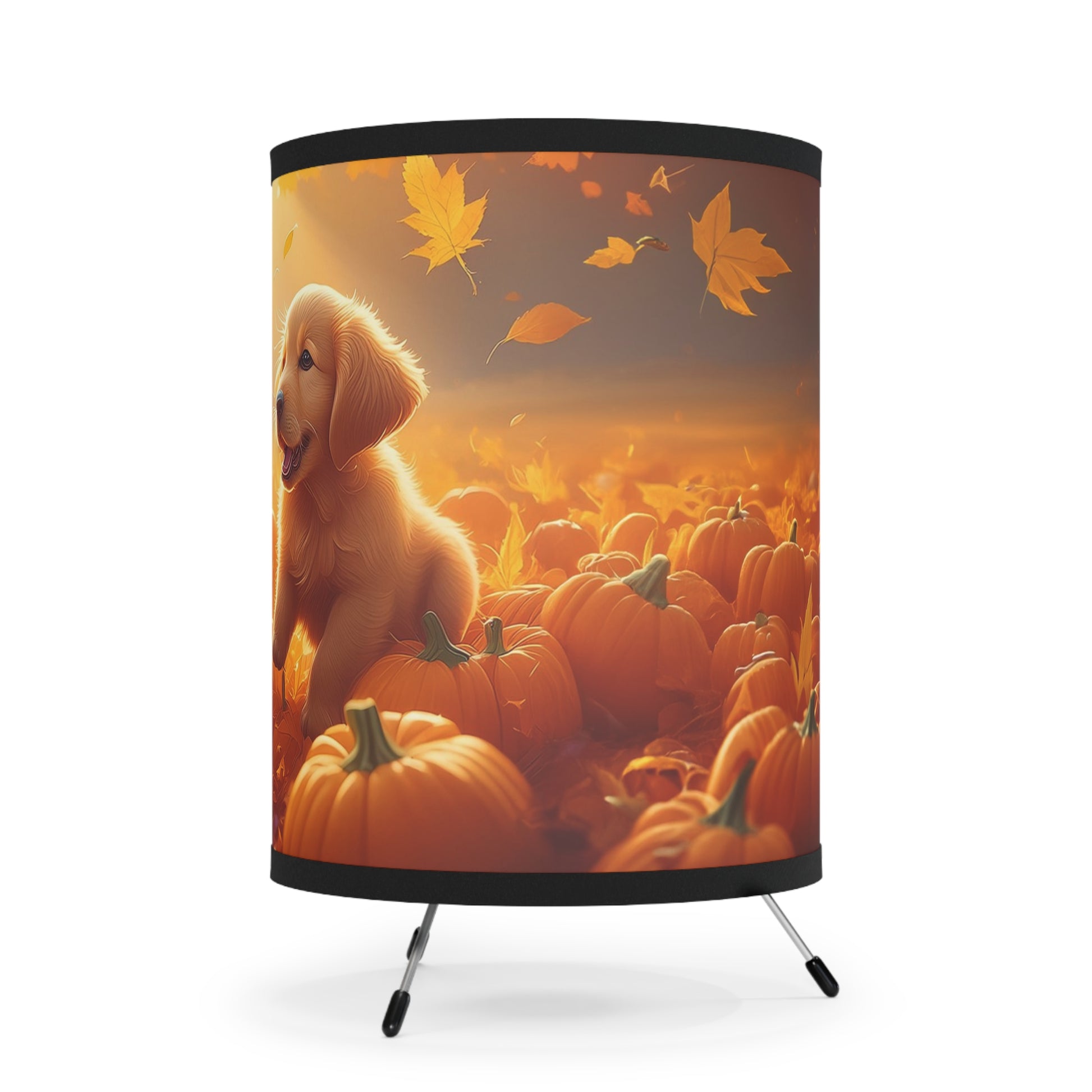 Golden Retriever Pumpkin Patch Tripod Lamp with High-Res Printed Shade, US\CA plug