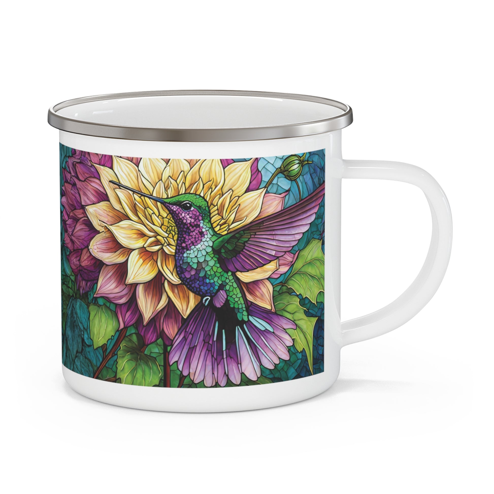 Hummingbird Dahlia Garden Enamel Camping Mug