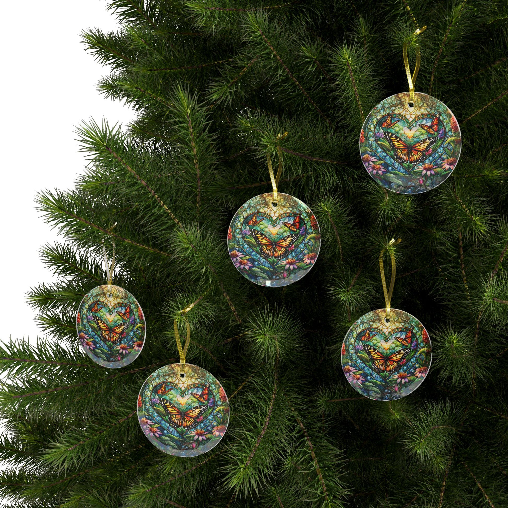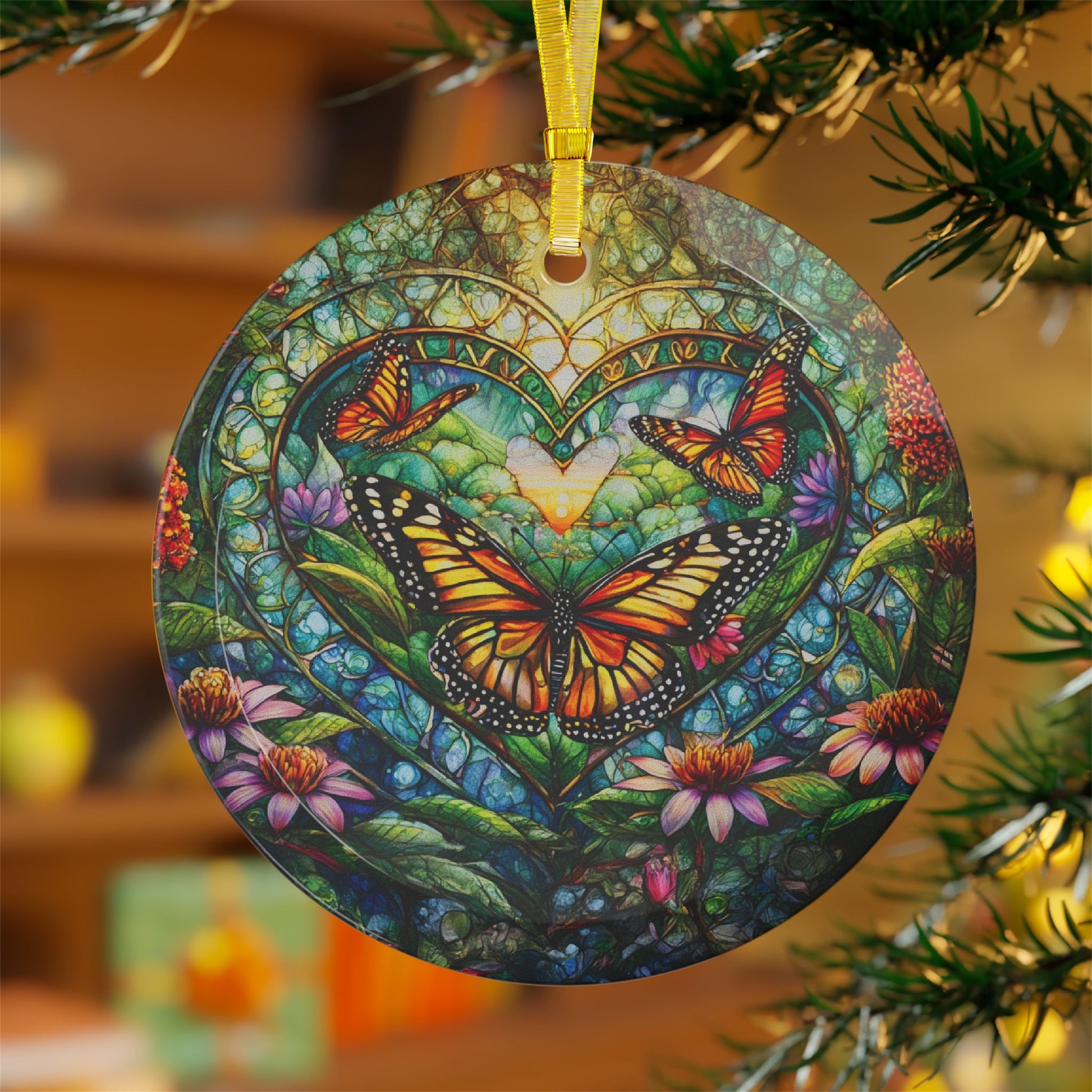 Love of Butterflies Monarch Heart Light Catcher Glass Ornaments