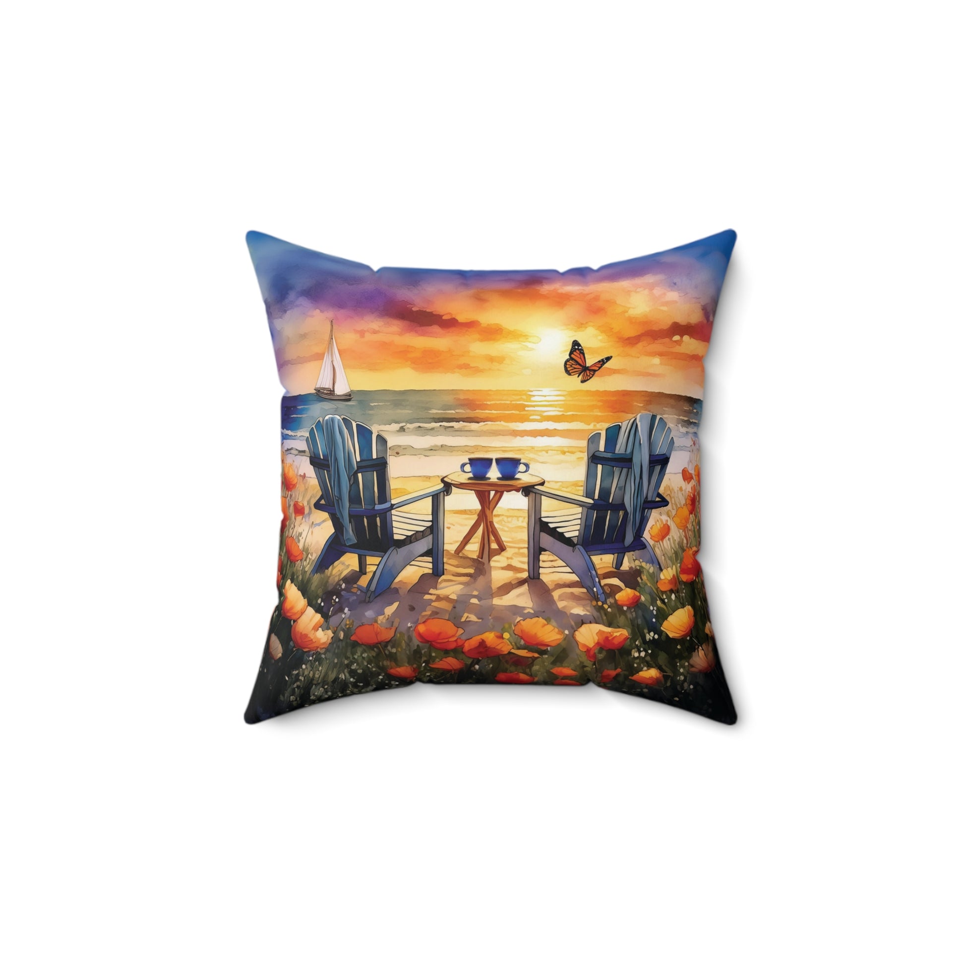 Morning Beach Sunrise Spun Polyester Square Pillow