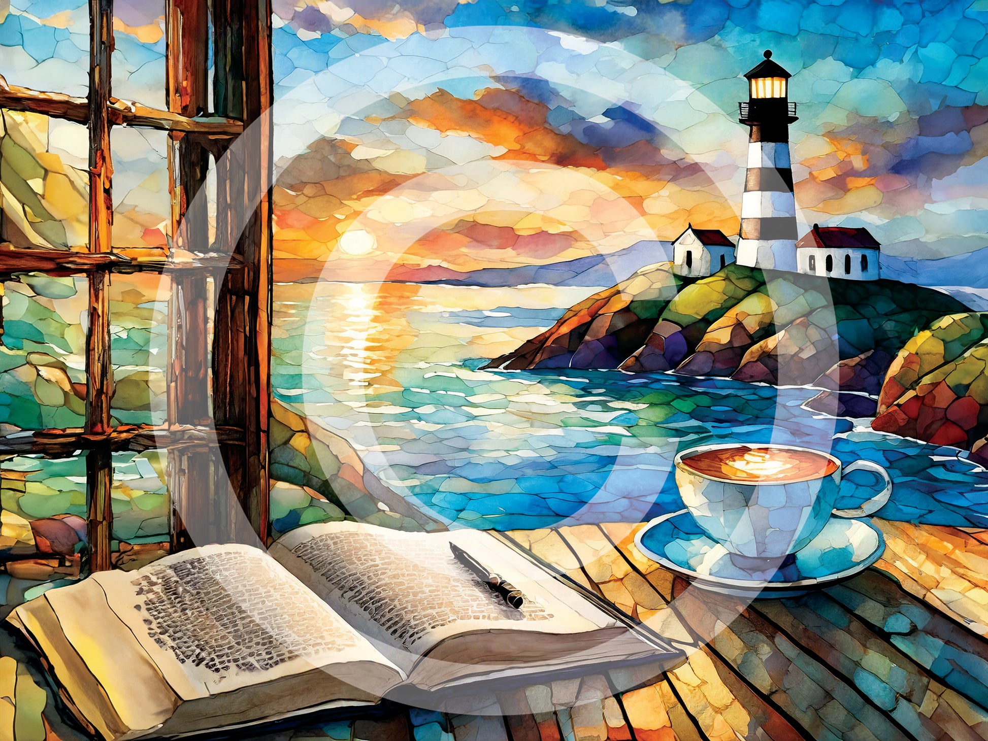 This exquisite piece captures the magical moment when the first rays of sunlight kiss the ocean, casting a golden glow over the waters with the stoic lighthouse standing guard, a beacon of hope and guidance. This stunning depiction not only brings a touch of serene elegance to your home, garden or office but also serves as a daily reminder of the boundless possibilities that each new day brings.