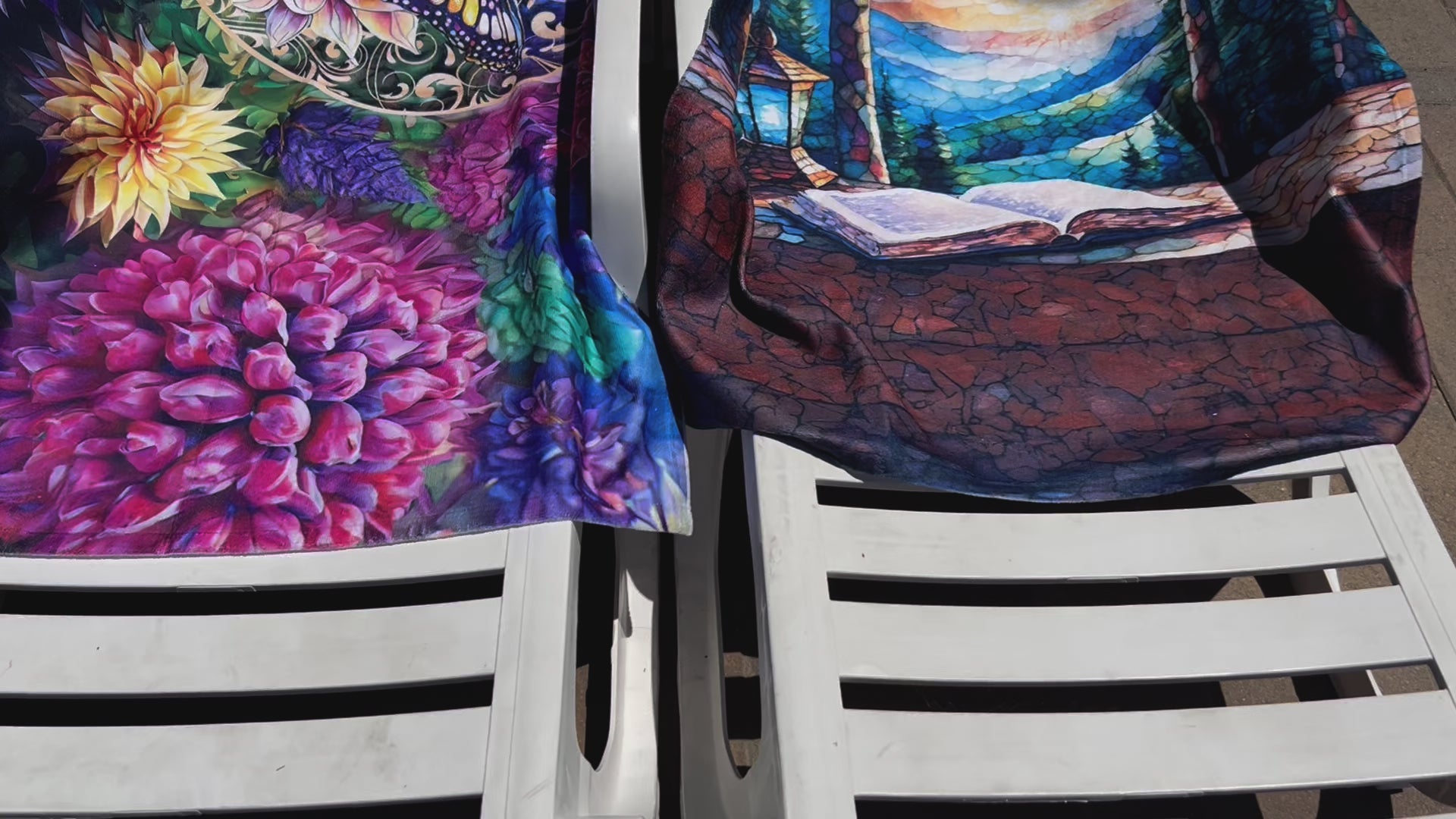 Please note: Due to the thickness of the towel the print colors may not soak all the way through the fabric and a white backing can appear when towel fibers are stroked.