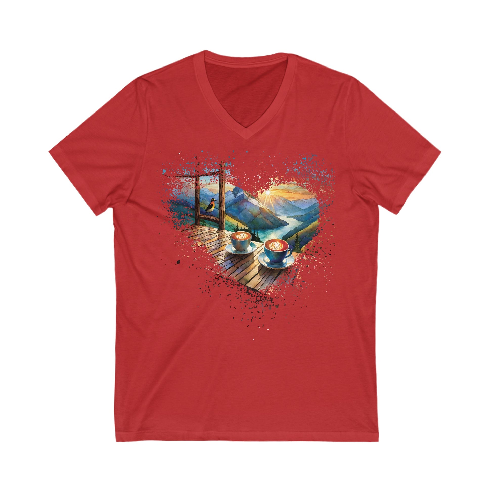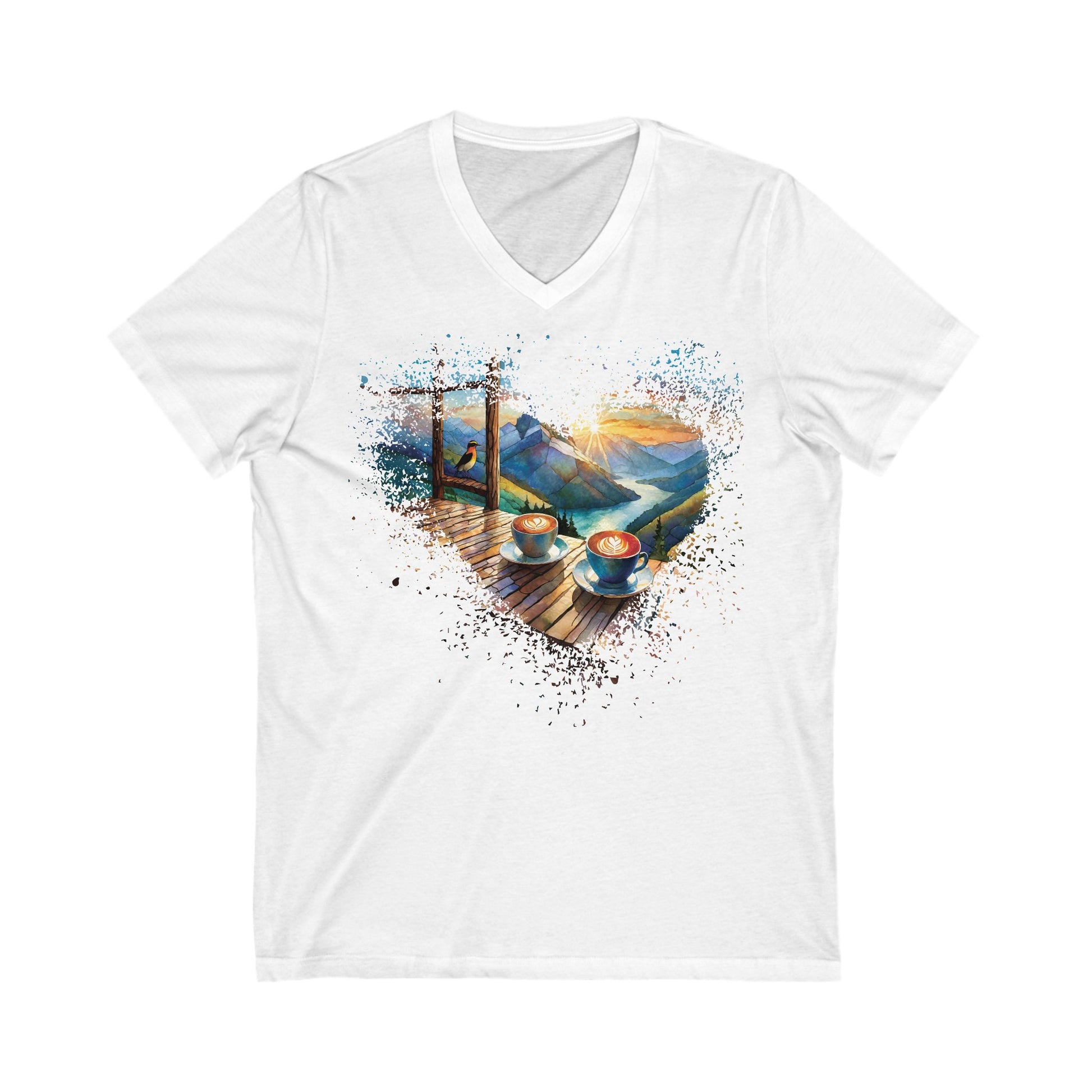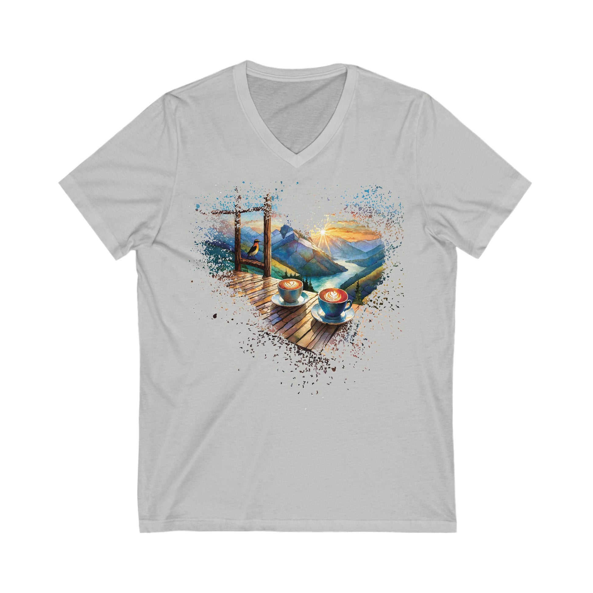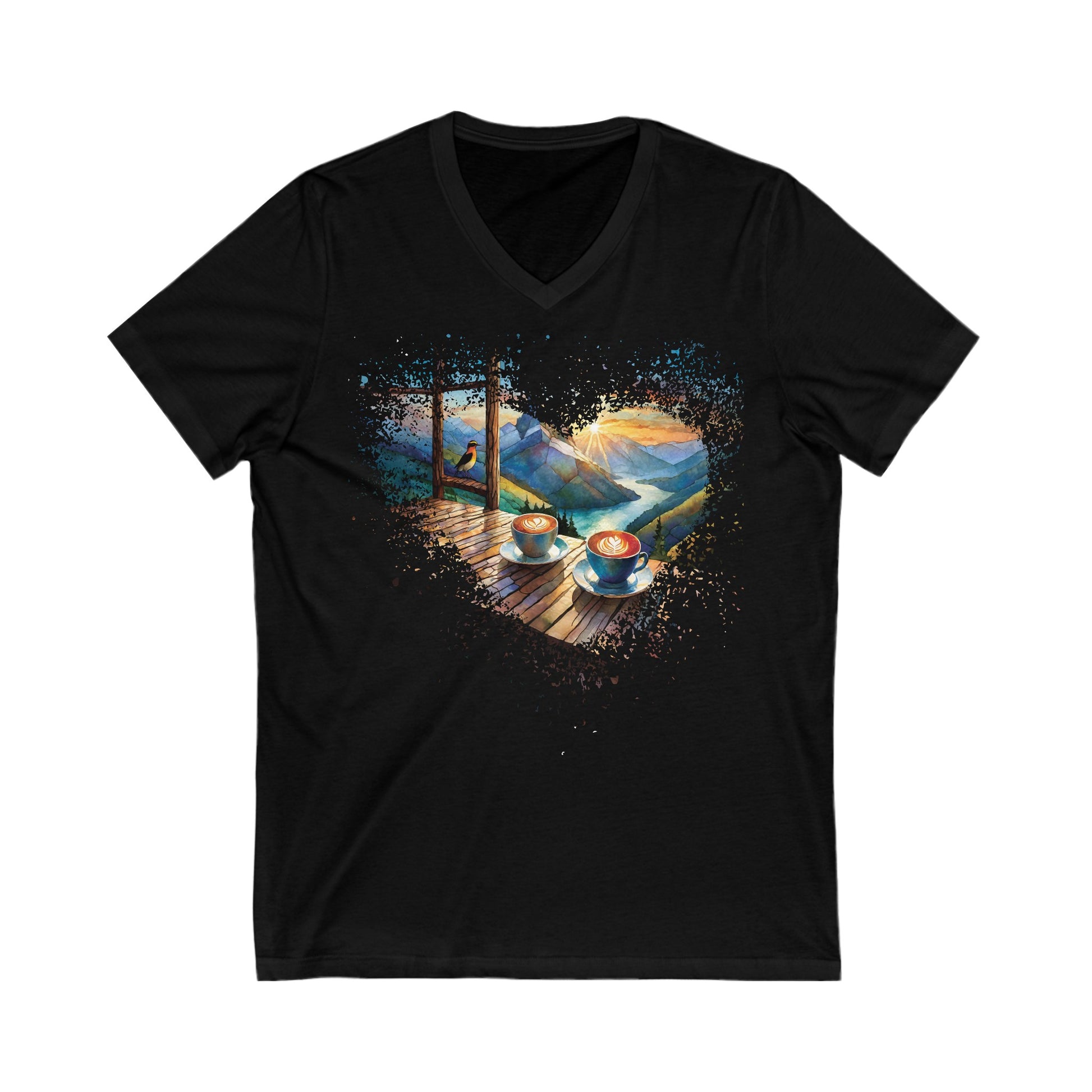 Mountain View, Outdoor Adventures, Coffee Time, Sunset Hour, Hiking, Shirt Jersey Short Sleeve V-Neck Tee