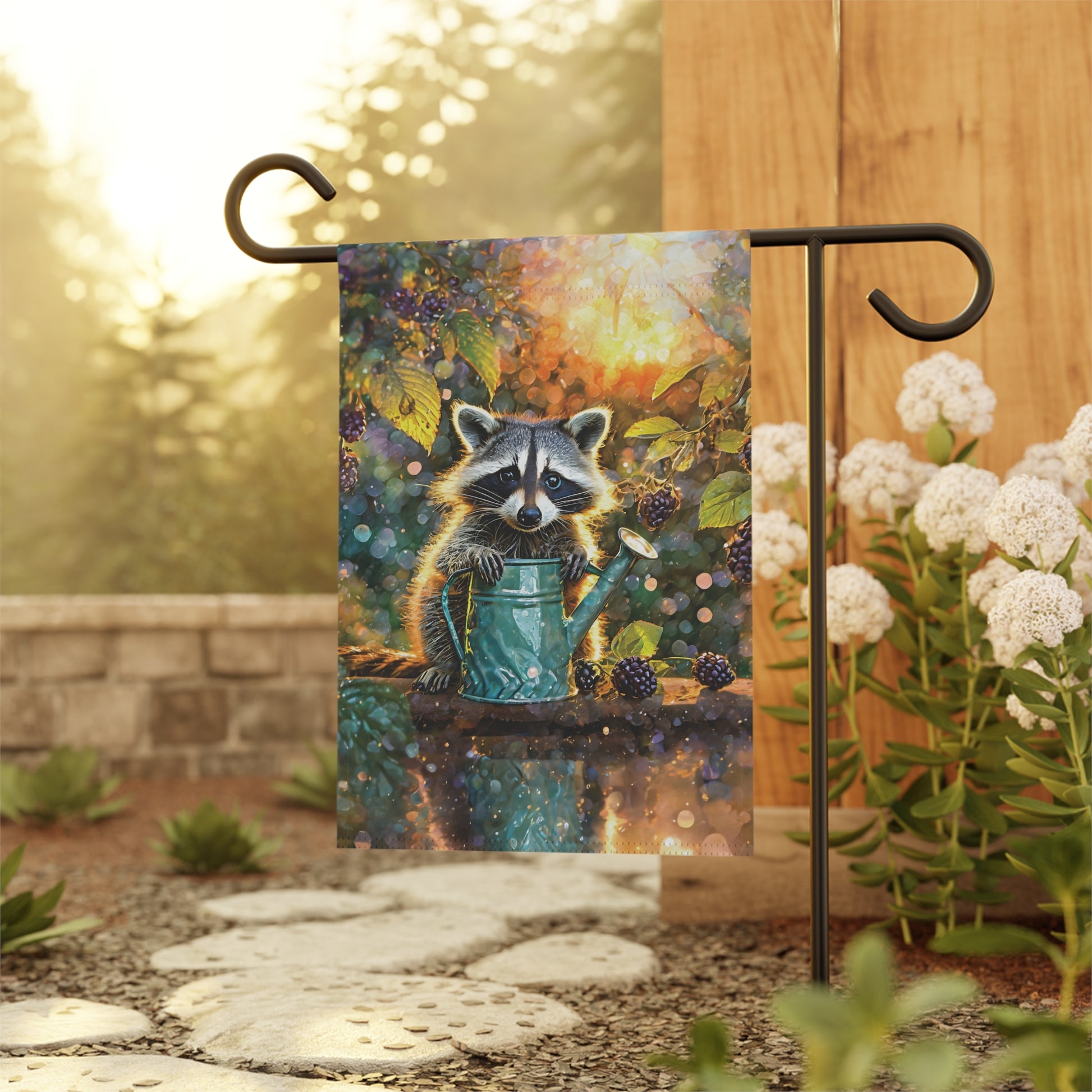 Raccoon Berry Time Flag Garden & House Banner