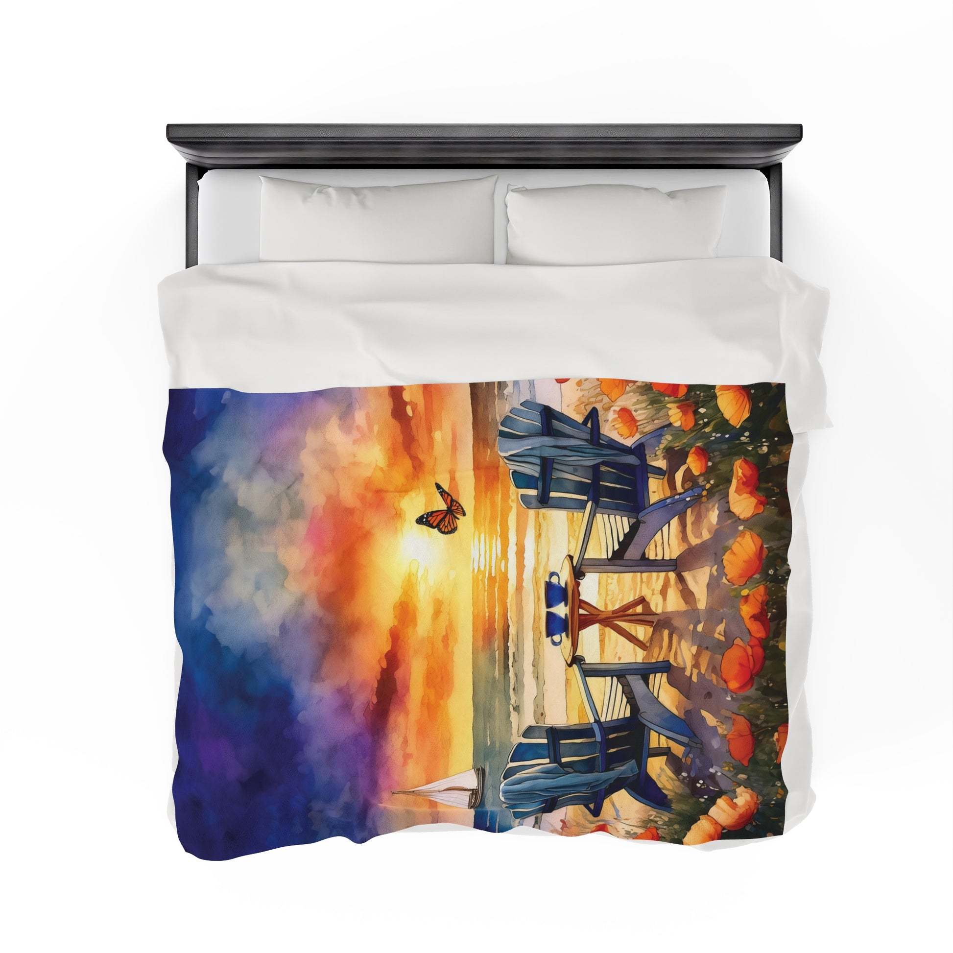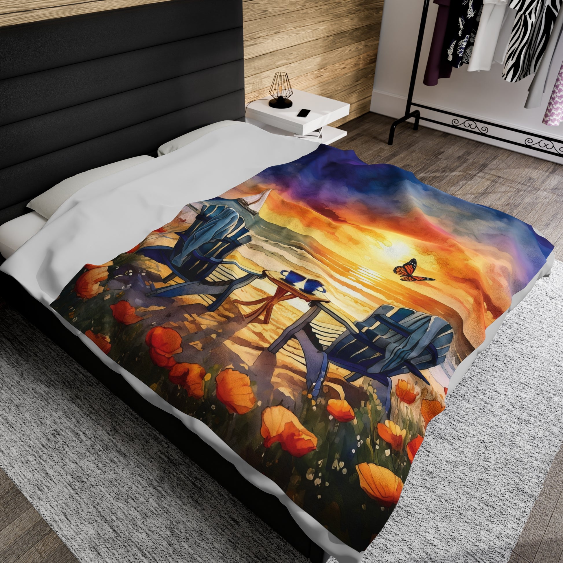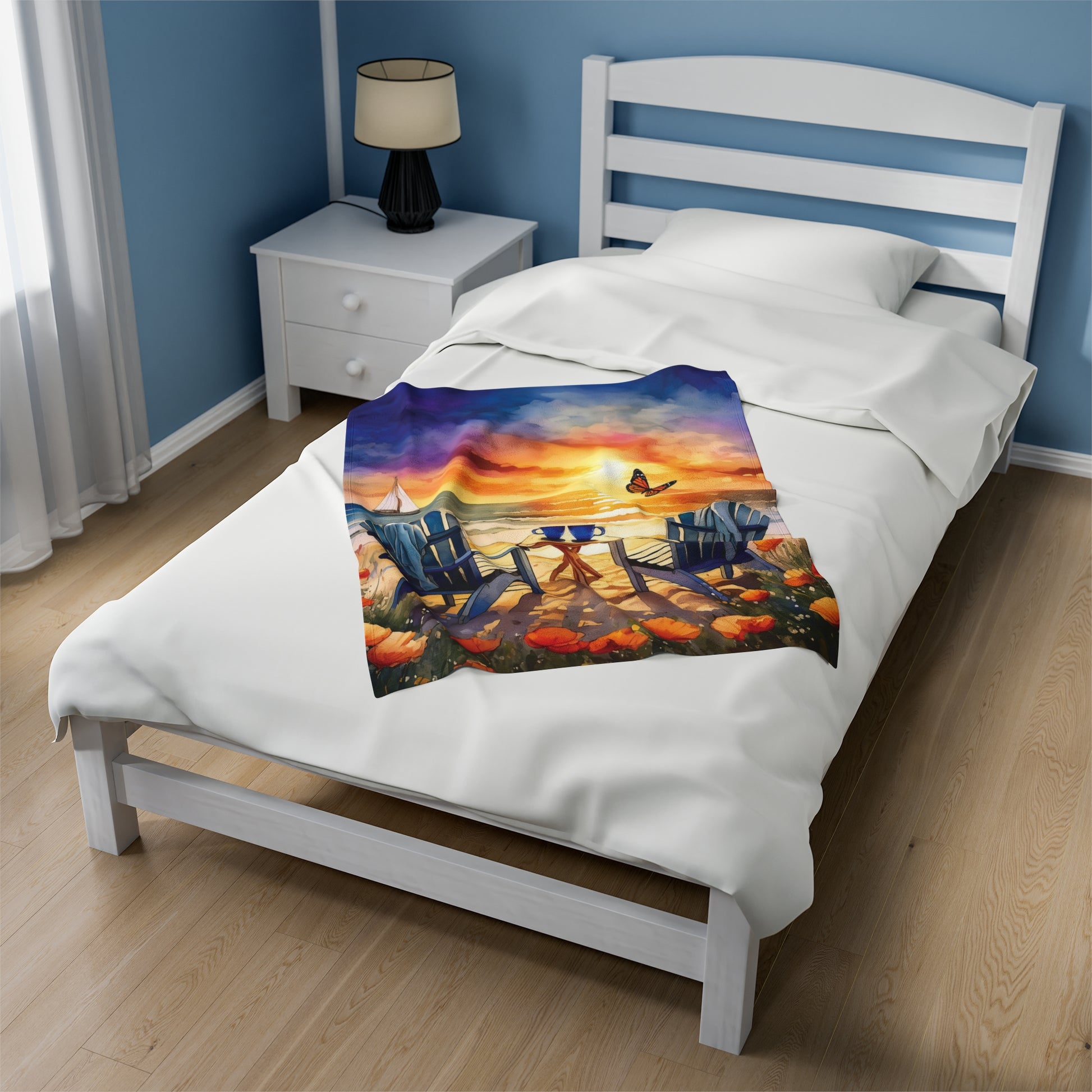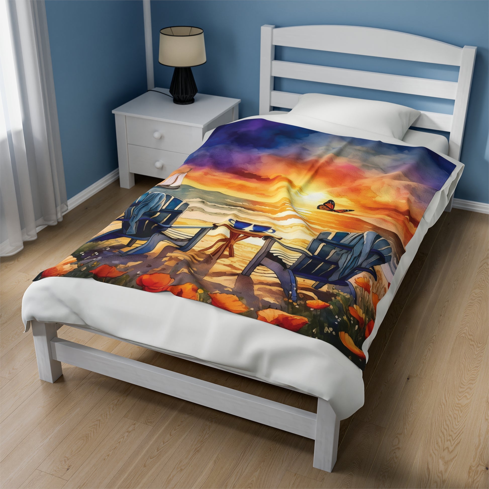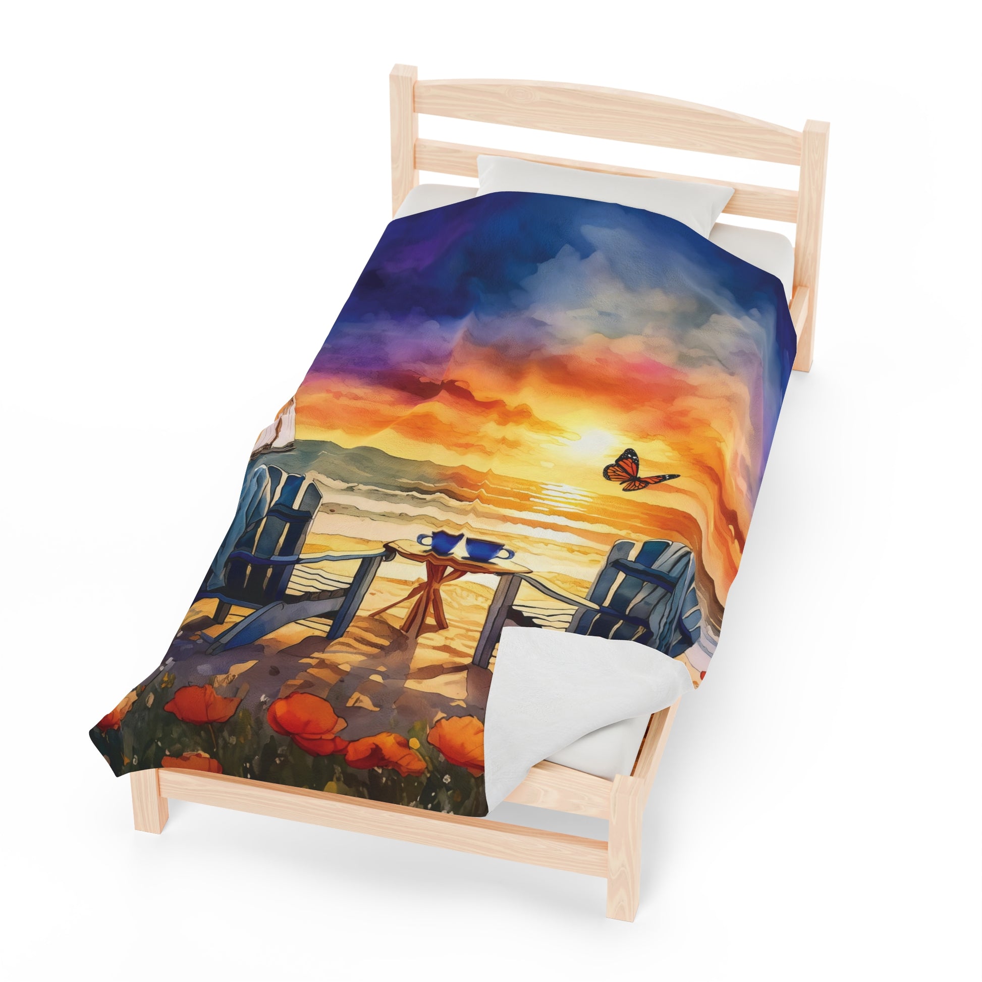 Soft Beach Blanket Gift Beach Lover Throw Blanket Warm Soft Beach Themed Blanket Coffee Beach Sunset Velveteen Plush Blanket