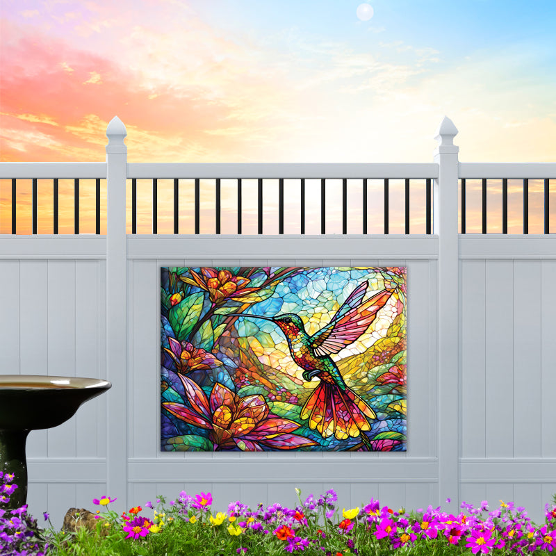 Enchant your outdoor space with this timeless Stained Glass Hummingbird artwork. The vibrant colors are sure to bring a smile to all your friends and neighbors!