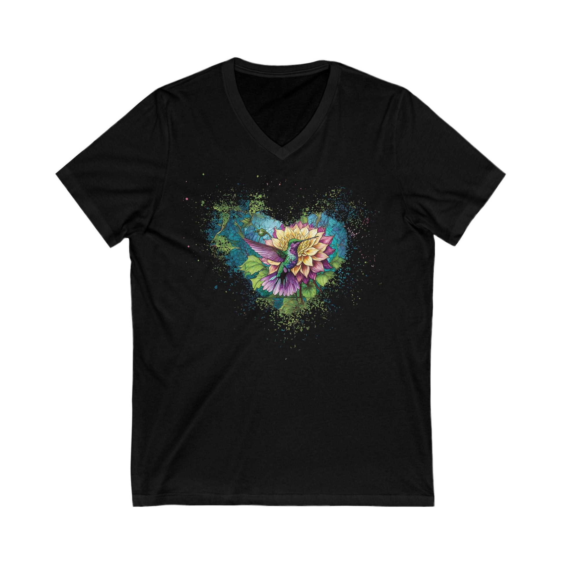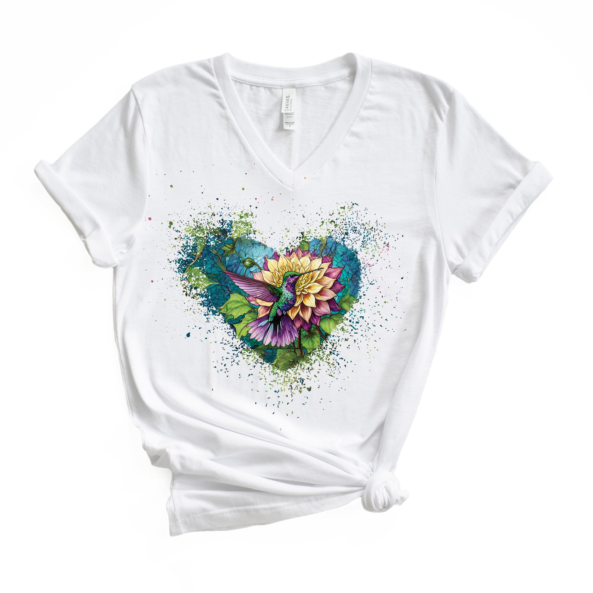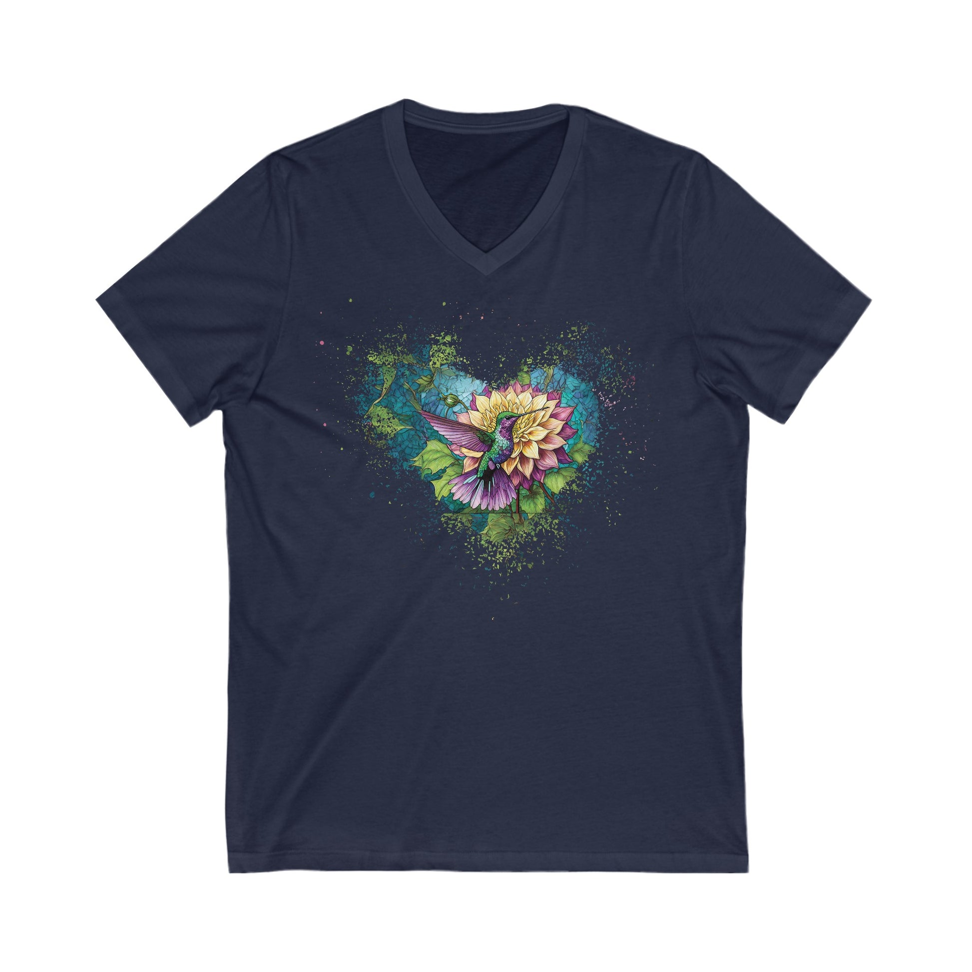 Stained Glass Hummingbird Tshirt Garden Lovers Shirt Jersey Short Sleeve V-Neck Tee