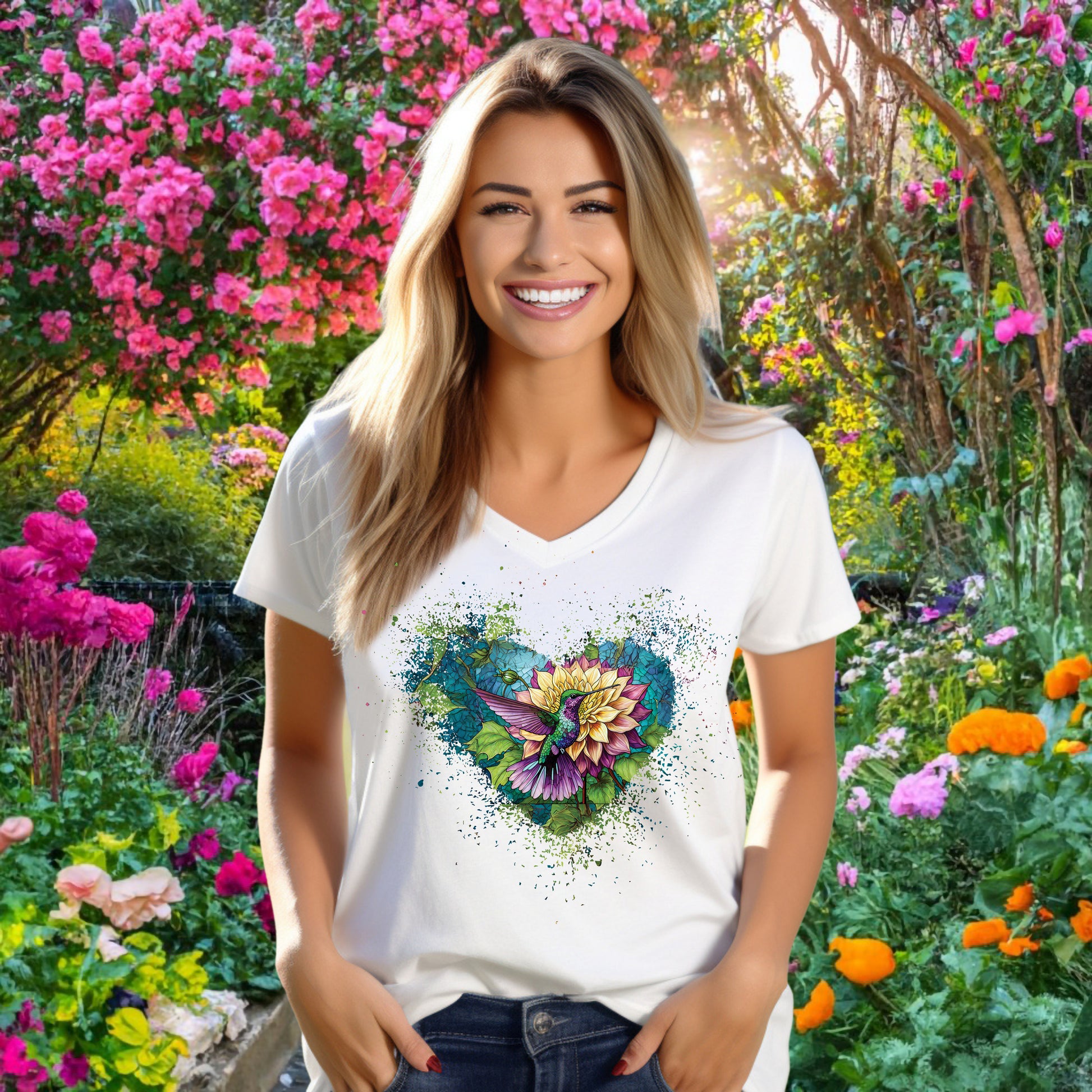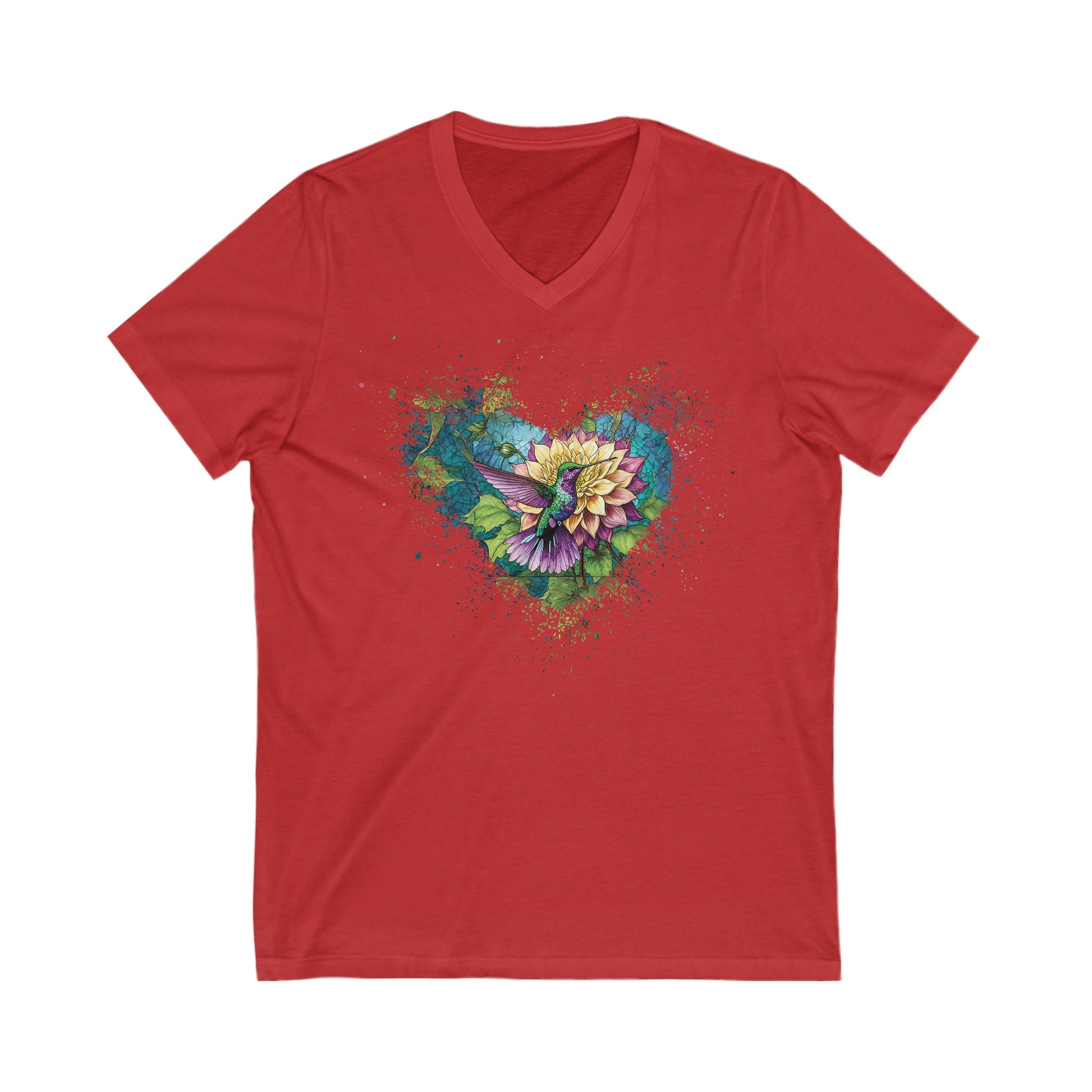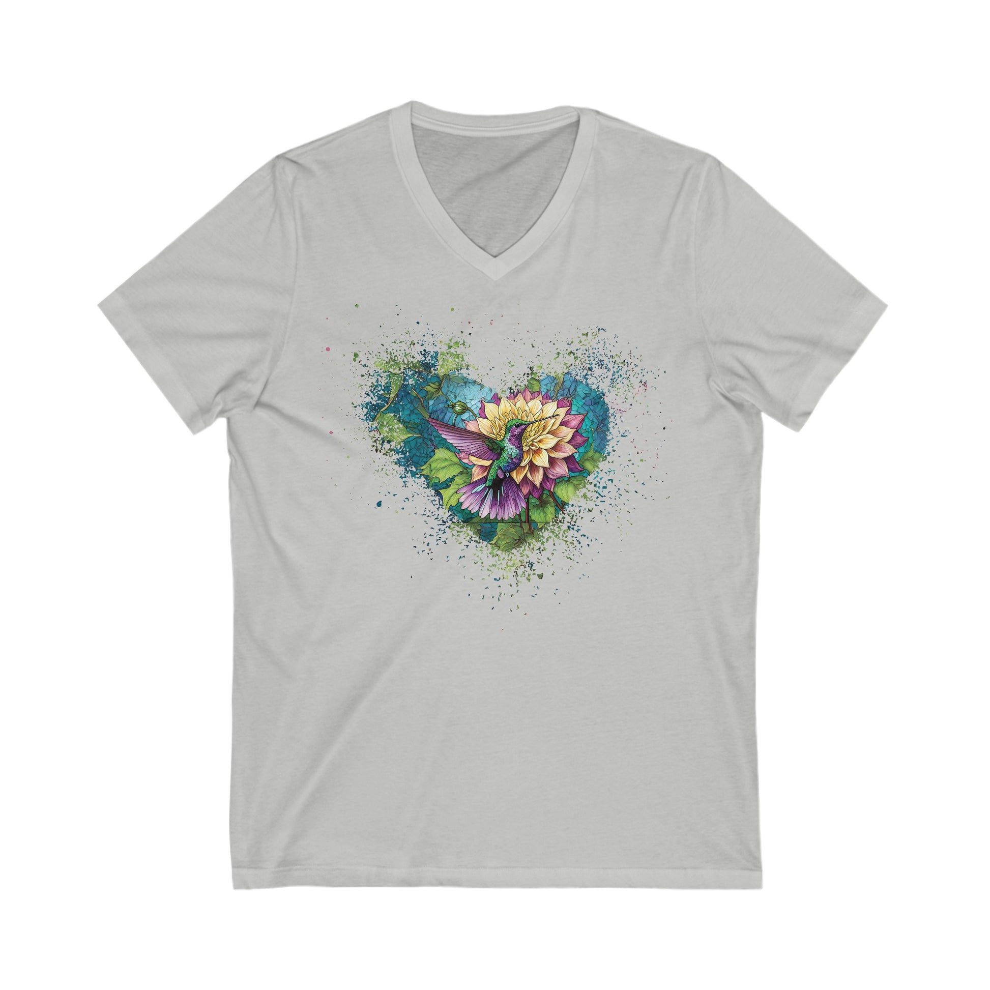 Stained Glass Hummingbird Tshirt Garden Lovers Shirt Jersey Short Sleeve V-Neck Tee