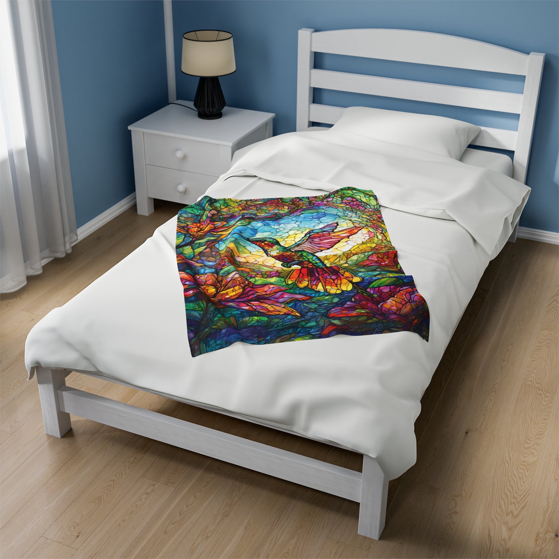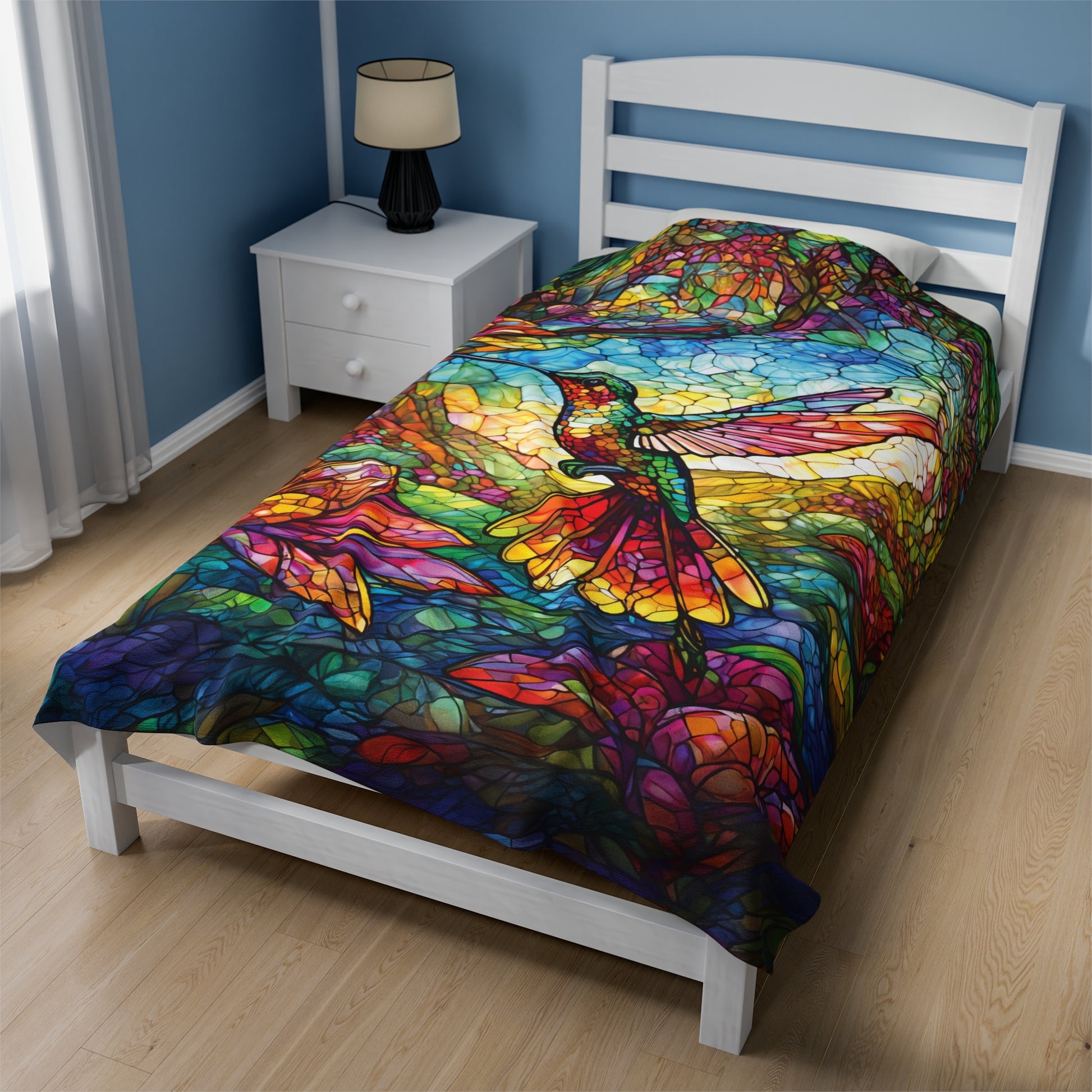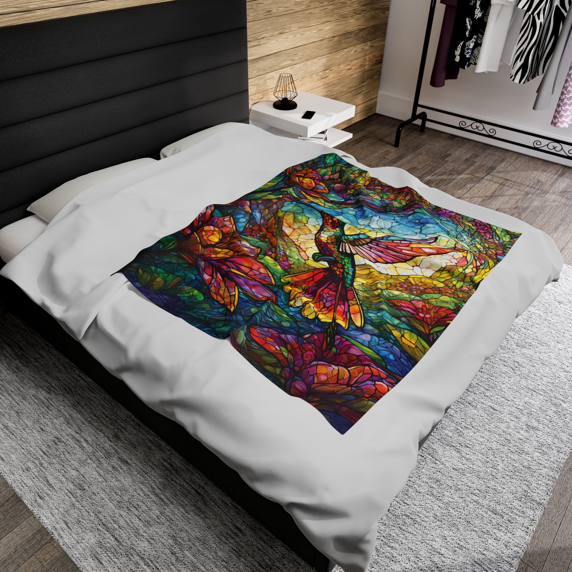 Stained Glass Hummingbird Velveteen Plush Blanket