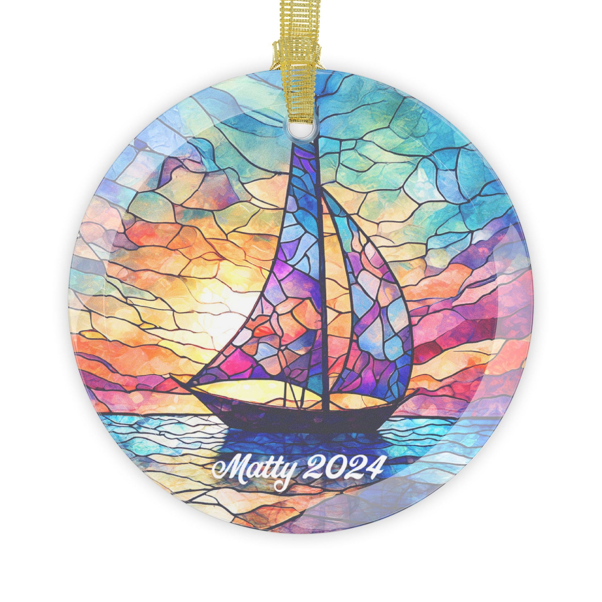 This exquisite Stained Glass Sailboat will transport you to the open sea with its breathtaking depiction of a sailboat gliding through a vibrant sunset. Masterfully crafted from premium stained glass, the vivid colors and delicate details create an eye-catching work of art that will elevate any space. Whether you display it in your living room, office, Christmas tree, or anywhere else, this stained glass sailboat will instantly become the centerpiece, filling the room with its warm, mesmerizing glow. Bring the serene beauty of the open waters into your home and let this stunning piece inspire your nautical dreams.