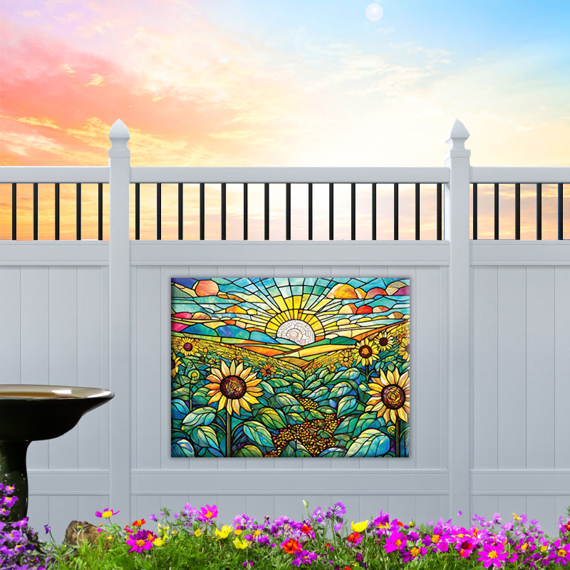 Enjoy this bright sunny design in any small space that needs a little window into a wild sunflower garden. This piece is sure to bring a little sunshine into any space!