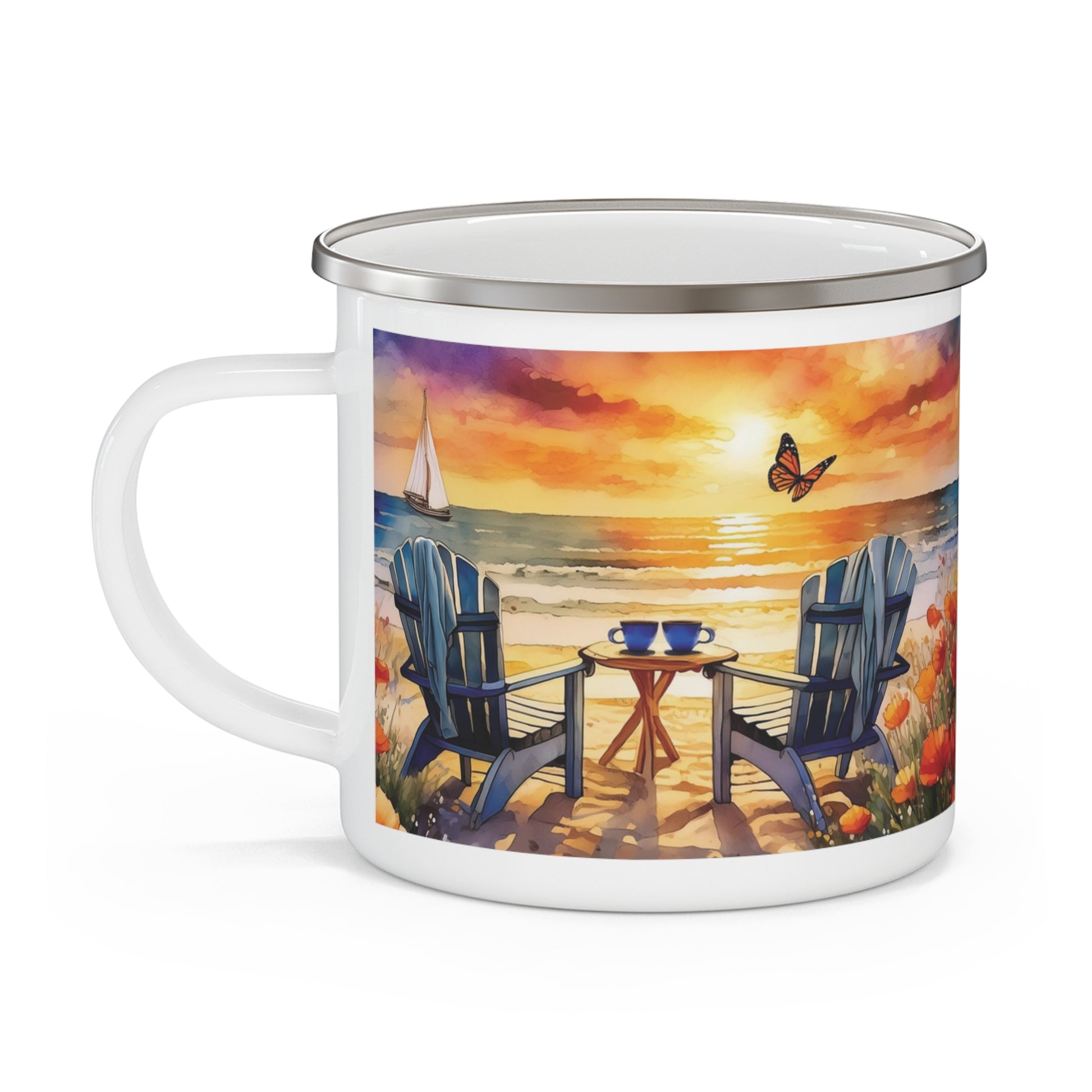 Get your hands on this durable enamel mug that holds 12 ounces of your favorite beverage. Add a personalized touch to your hipster moment with full-color printing of a photo, logo or design. Great for indoors and outdoors activities as it can keep up with the dirt and grunge of campsites. This sturdy and stylish cup is perfect for coffee, tea or even your morning cereal in the wild.