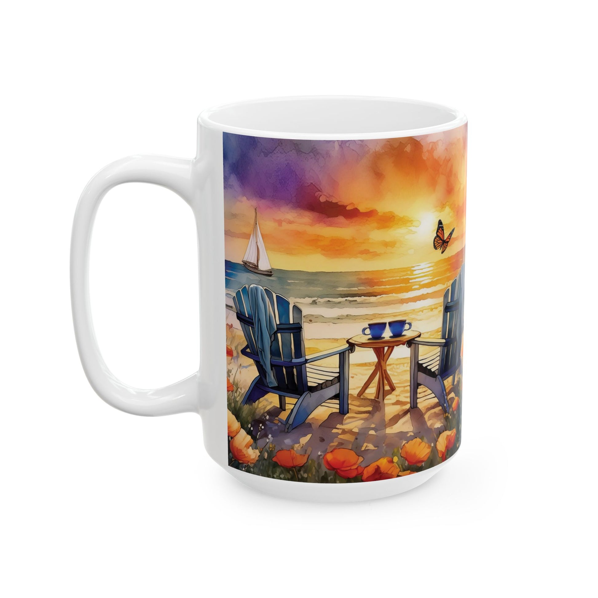 Sunset Beach Delight Ceramic Mug, (11oz, 15oz)