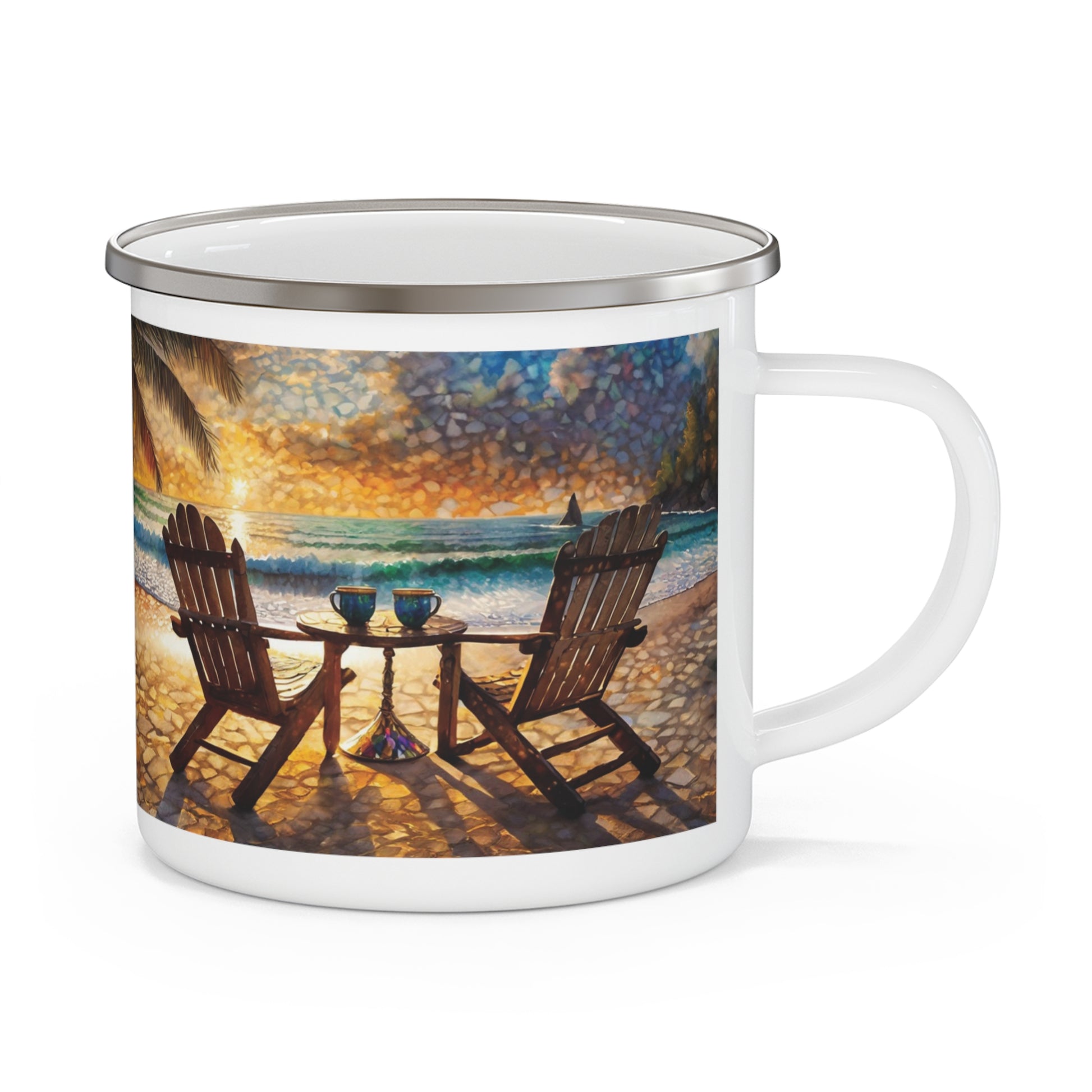 Get your hands on this durable enamel mug that holds 12 ounces of your favorite beverage. Add a personalized touch to your hipster moment with full-color printing of a photo, logo or design. Great for indoors and outdoors activities as it can keep up with the dirt and grunge of campsites. This sturdy and stylish cup is perfect for coffee, tea or even your morning cereal in the wild.