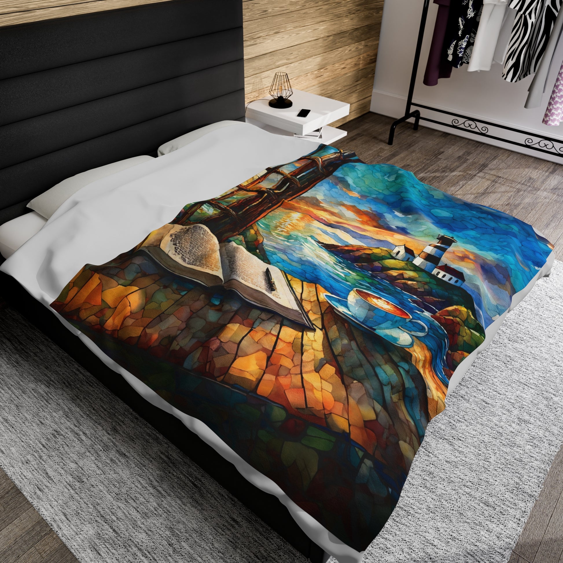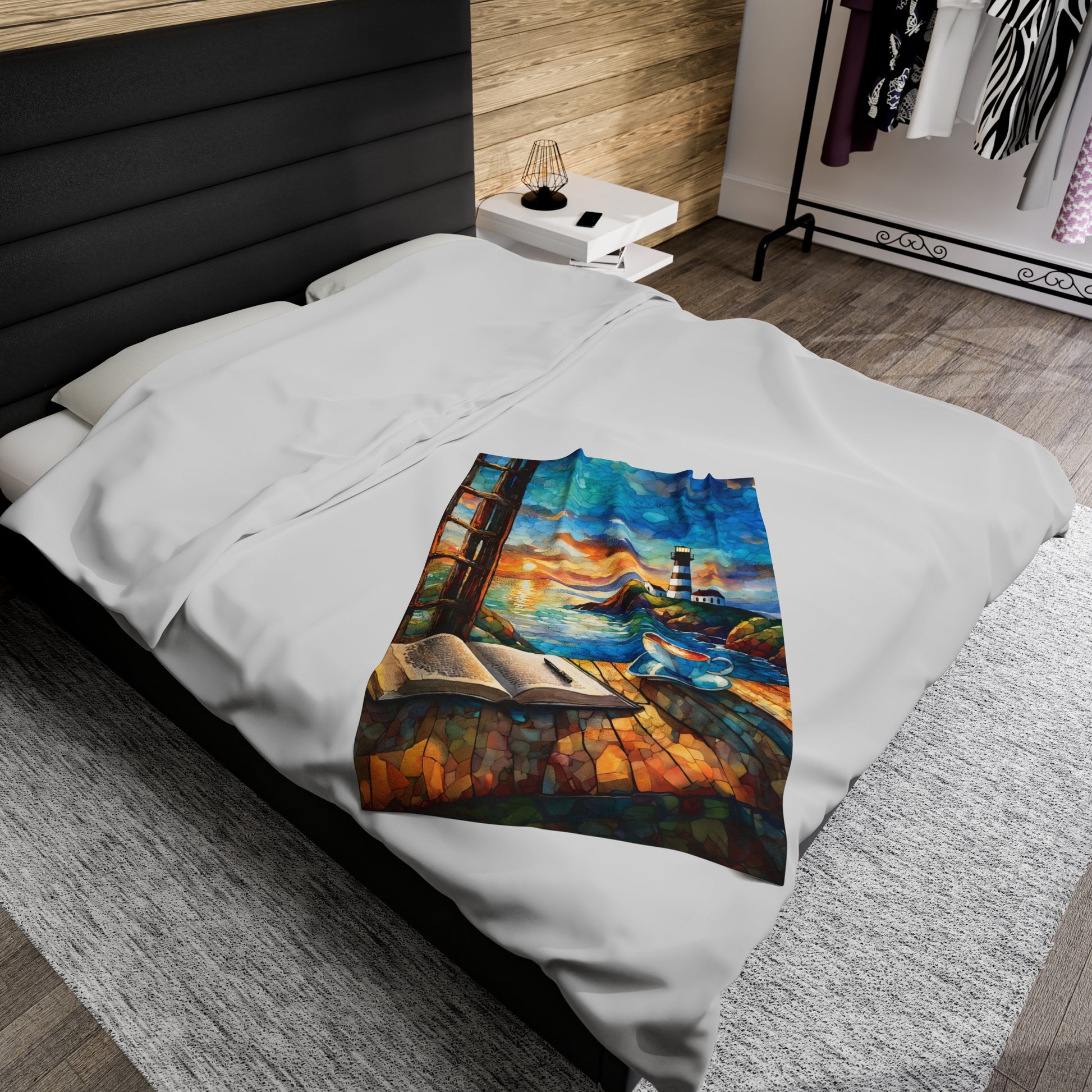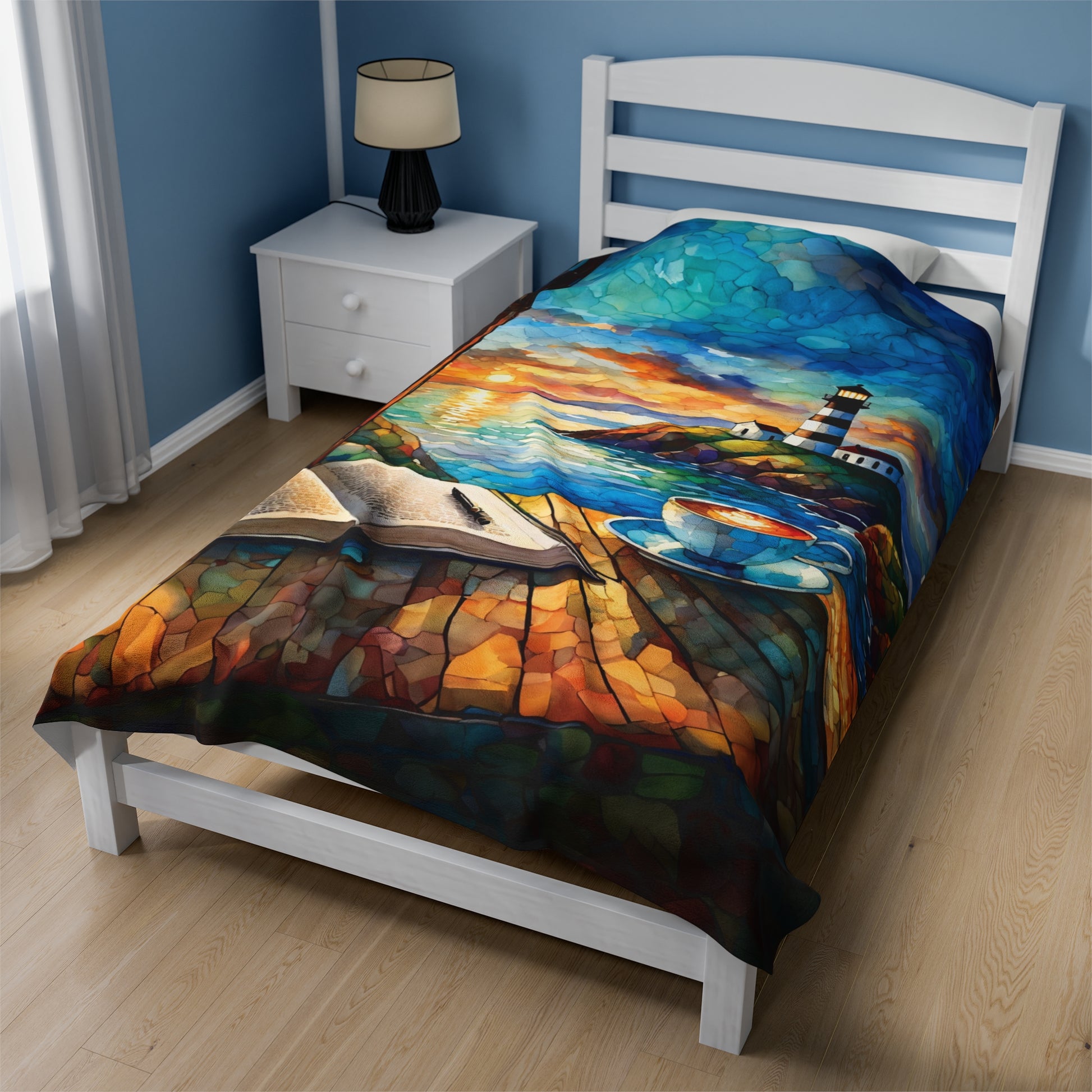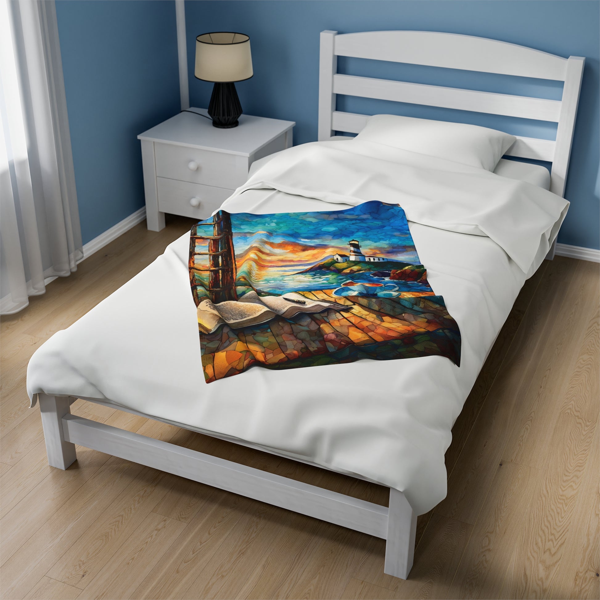 Velveteen Plush Blanket - Ocean View Lighthouse Cozy Soft Throw