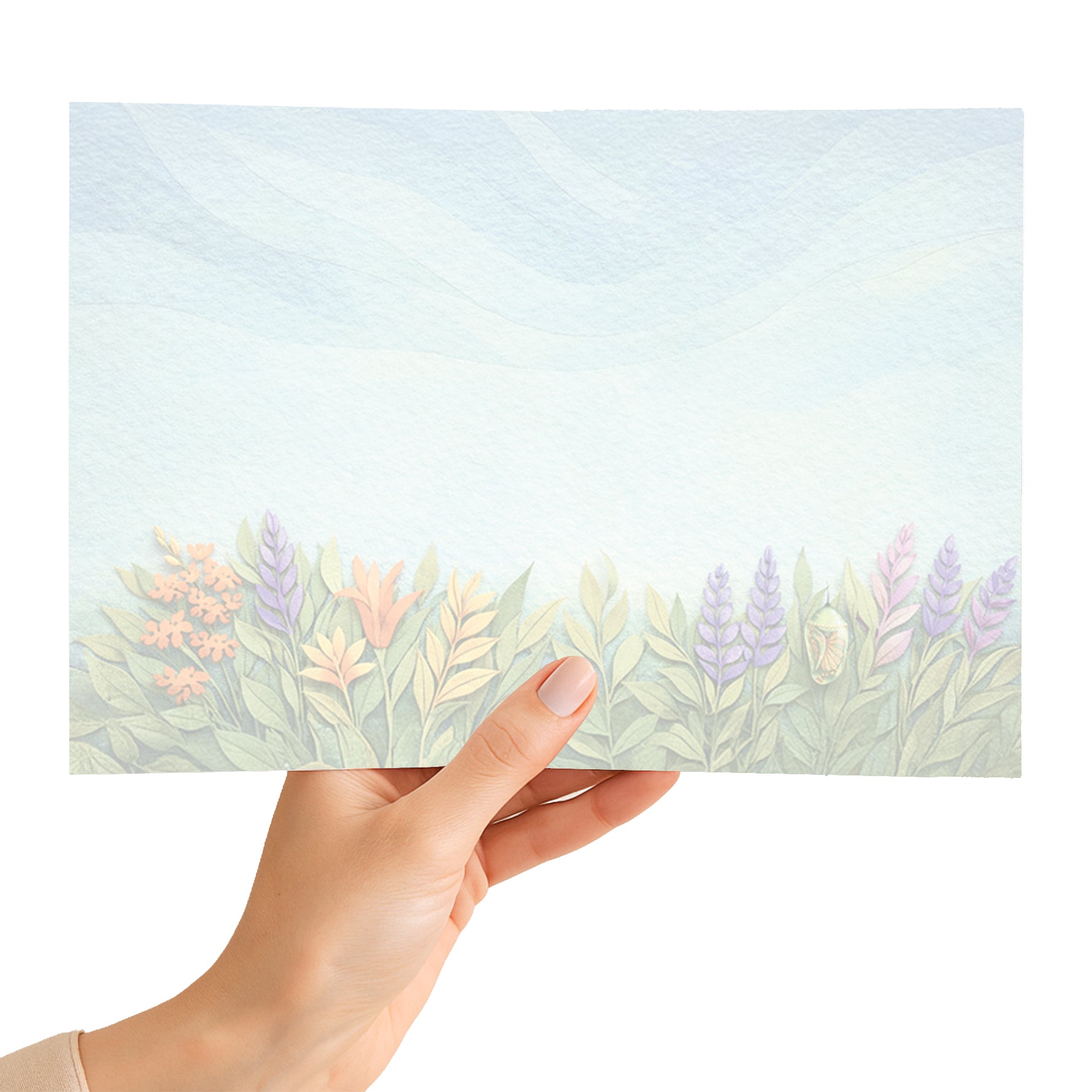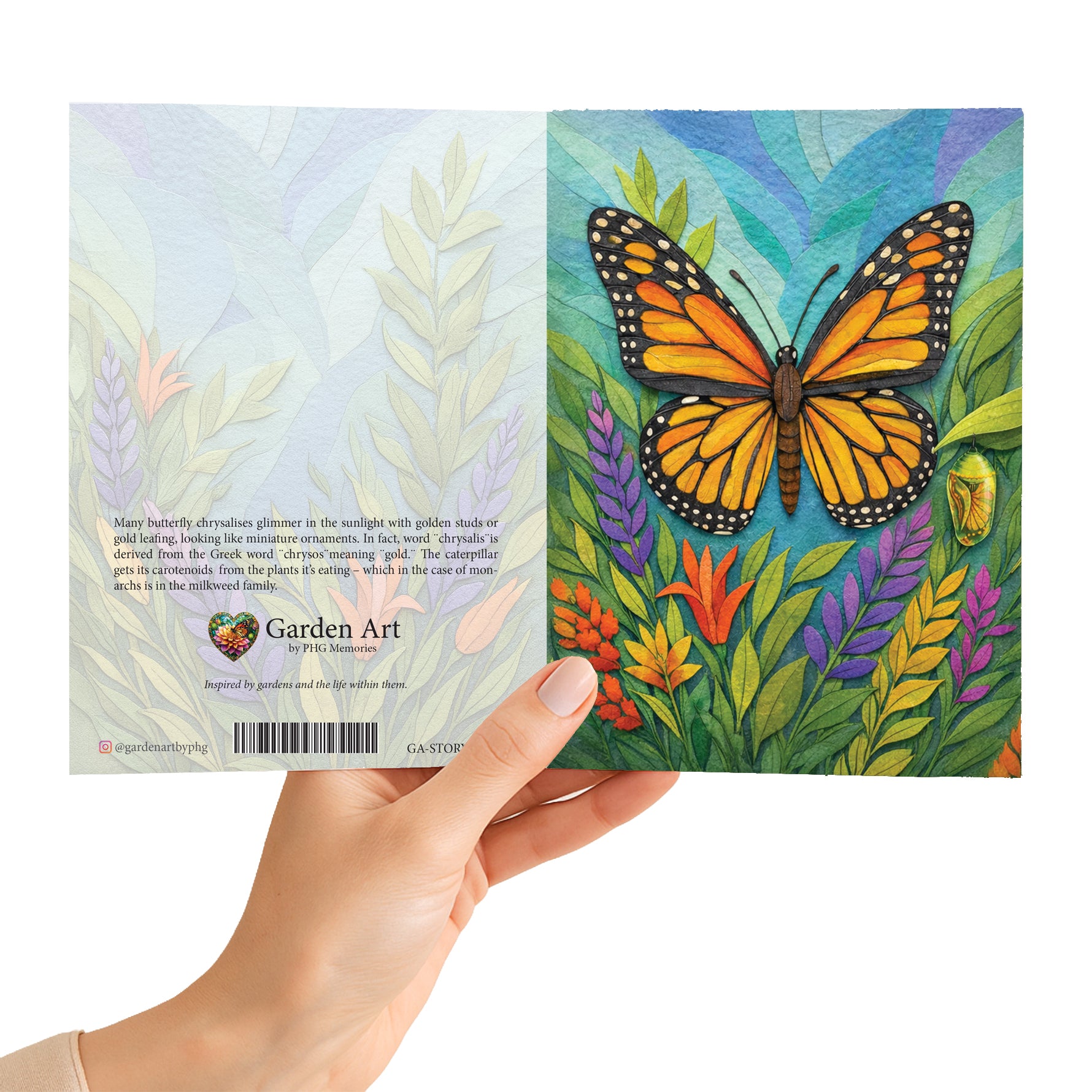 The artwork is artist-designed using digital illustration and mixed-media techniques, inspired by pollinator gardens and the quiet beauty of change. Each card is designed and printed in Murrieta, California on premium felt paper, giving the piece a rich texture and timeless, handcrafted feel.