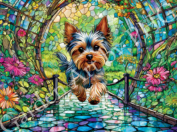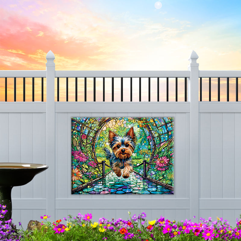Someone's happy to see you and is running as fast as their little paws can run! Enjoy this colorful piece and brighten up any space in your yard or room.